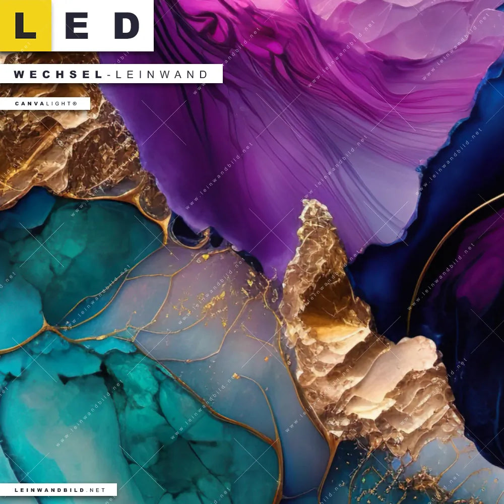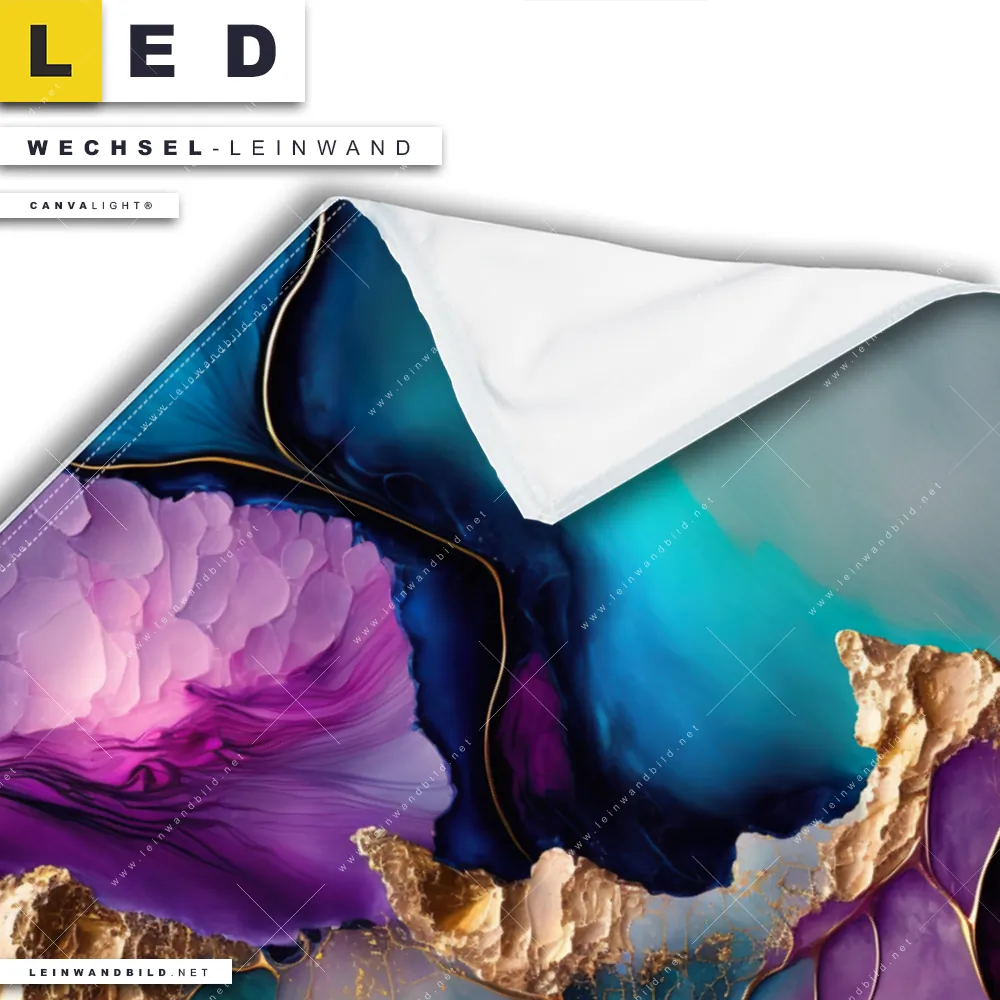 Du bist auf der Suche nach einer Muster - Texturen Wechsel-Leinwand für Dein LED-Leinwandbild im Querformat? Begriffe wie Marmor, Flüssigkeit, Acryl, flüssig, Farbe, Marmorierung, Tinte, Fluid Art haben Dich auf der Suche nach Deiner Ersatz-Leinwand für dein breites LED Wandbild mit wechselbarer Leinwand inspiriert? Farben wie Lila, Blau, Gold, Türkis dürfen auf Deinem neuen Wechselmotiv für Dein XXL Leinwand-LED-Bild nicht fehlen und Leinwände im Abstrakt, Modern Art Stil für Leuchtbilder passen perfekt zu Deinem Einrichtungsstil?