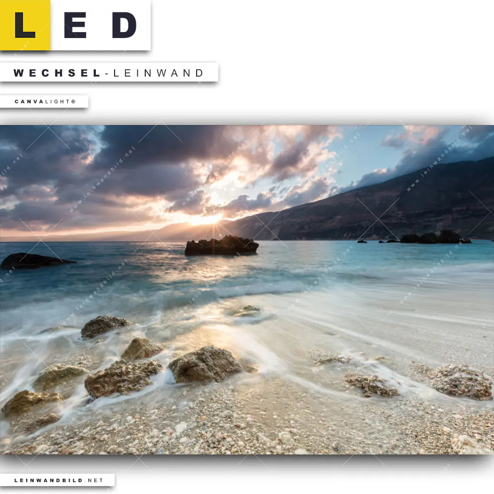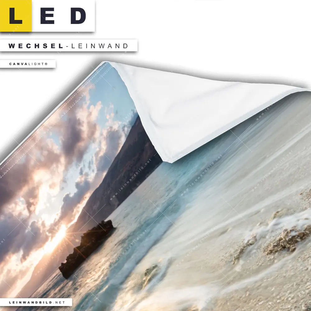 LED Wechsel-Leinwand Canvalight® TEX | Meeresrauschen bei Sonnenuntergang | Querformat