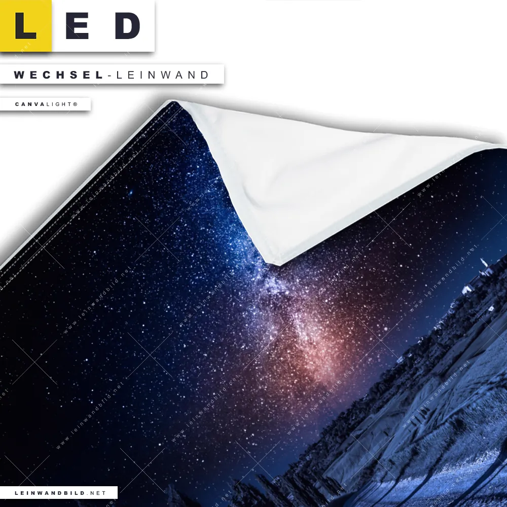 Bitte beachte, dass die Farben, der auf dem Monitor abgebildeten Sternenhimmel am Horizont Darstellung, möglicherweise von den Originalfarben deiner Canvalight® TEX Wechsel-Leinwand abweichen können.