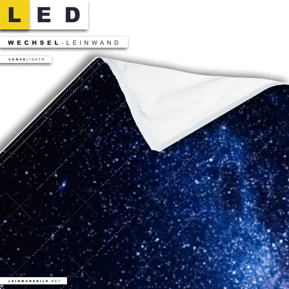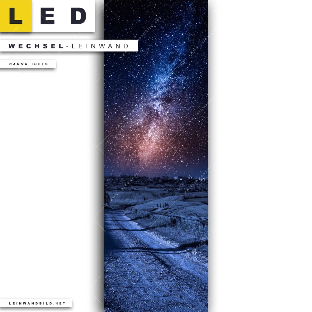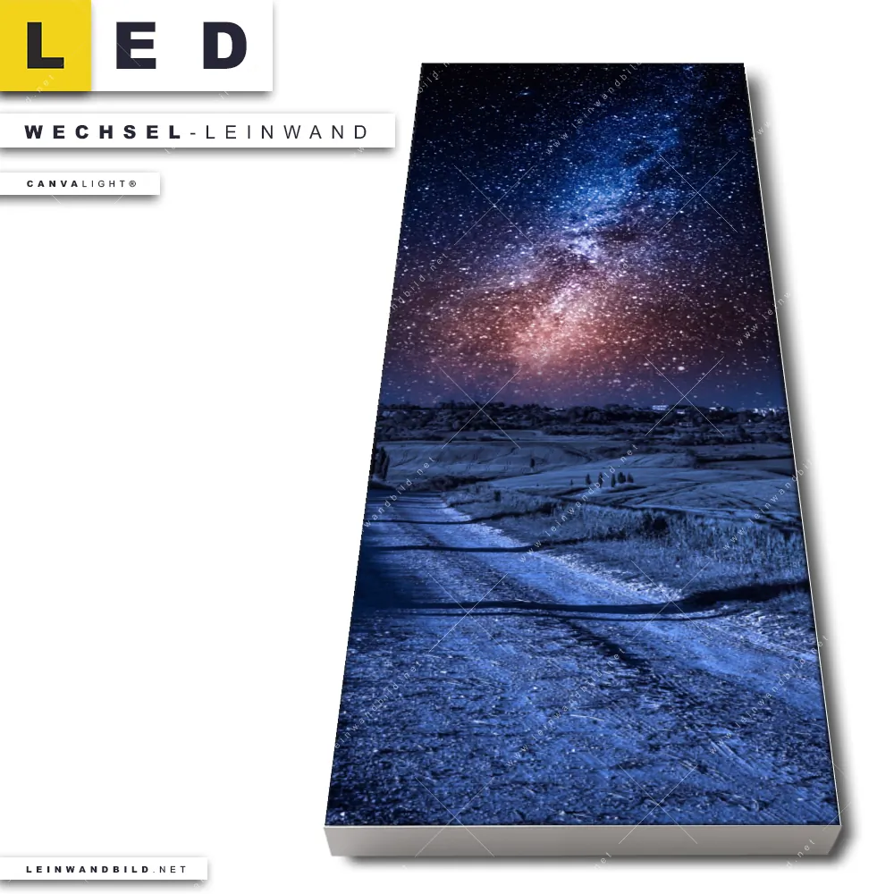 LED Wechsel-Leinwand Canvalight® TEX | Milchstraße über einem Feldweg | Schmal