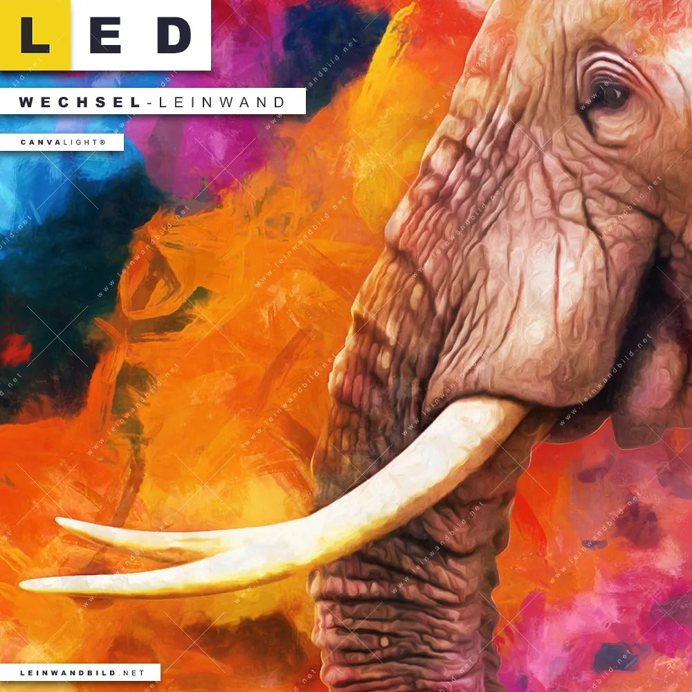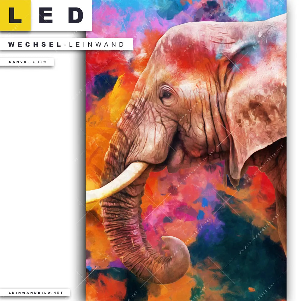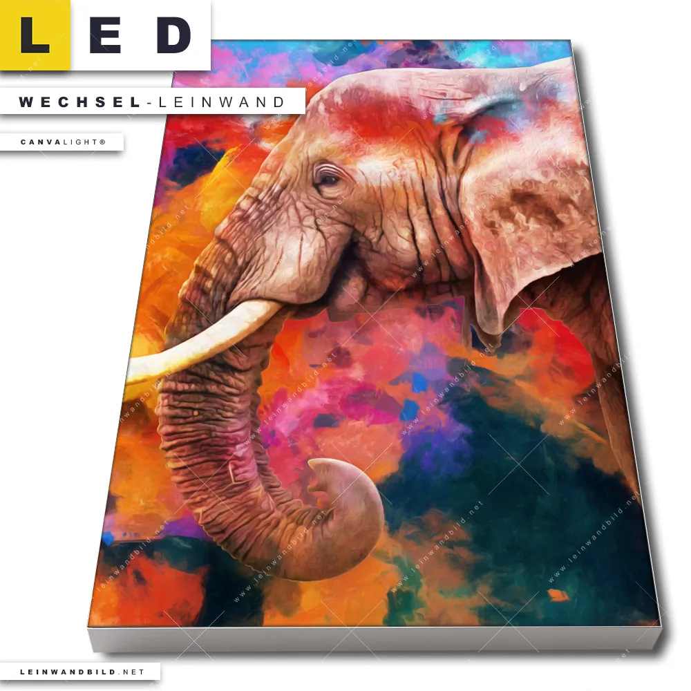 LED Wechsel-Leinwand Canvalight® TEX | Moderner Bunter Elefant | Hochformat