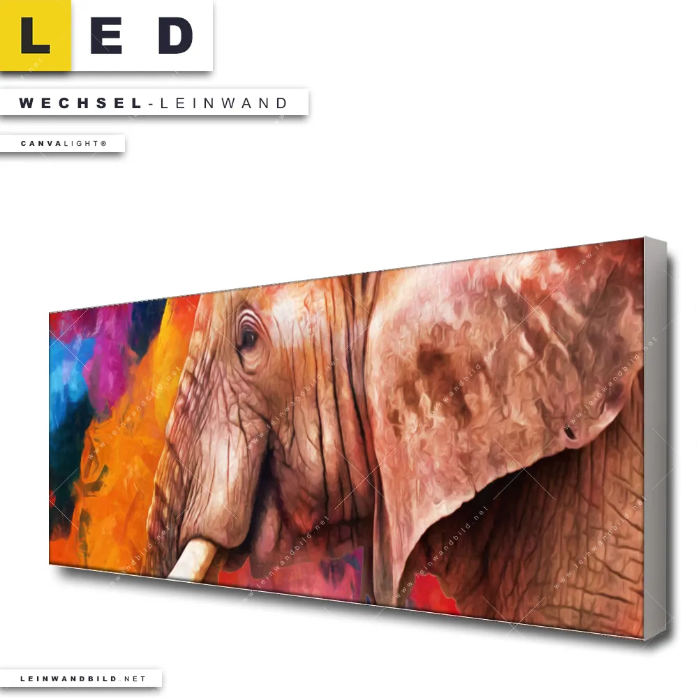 Du bist auf der Suche nach einer Tierwelt Wechsel-Leinwand für Dein LED-Leinwandbild im Panorama-Format? Begriffe wie Elefant, Safarie, Afrika, Big Five, Aquarell, Ölgemälde, Dickhäuter, Stoßzahn, Dschungel haben Dich auf der Suche nach Deiner Ersatz-Leinwand für dein extra breites LED Wandbild mit wechselbarer Leinwand inspiriert? Farben wie Bunt dürfen auf Deinem neuen Wechselmotiv für Dein XXL Leinwand-LED-Bild nicht fehlen und Leinwände im Abstrakt, Modern Art, Pop Art Stil für Leuchtbilder passen perfekt zu Deinem Einrichtungsstil?