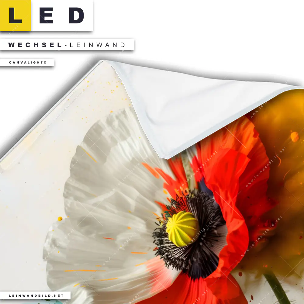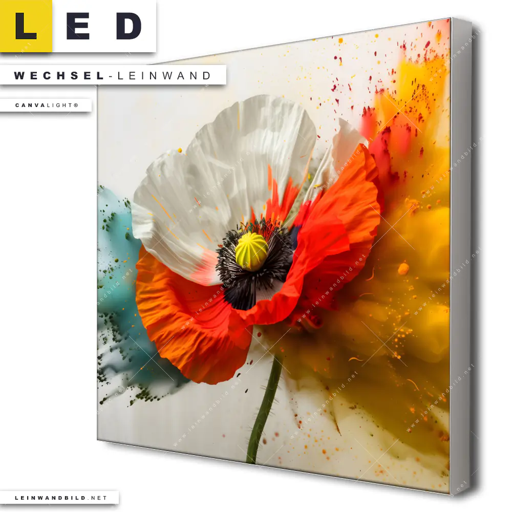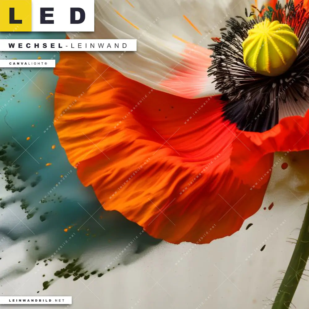 Du bist auf der Suche nach einer Blumen - Botanik Wechsel-Leinwand für Dein LED-Leinwandbild im Quadratischen Format? Begriffe wie Pflanze, Natur, Blüten, Mohnblumen, Blumenwiese, Klatschmohn, Blumen, Farbnebel, Farbwolke, Farbpulver haben Dich auf der Suche nach Deiner Ersatz-Leinwand für dein LED Wandbild mit wechselbarer Leinwand inspiriert? Farben wie Weiss, Rot, Türkis, Gelb dürfen auf Deinem neuen Wechselmotiv für Dein XXL Leinwand-LED-Bild nicht fehlen und Leinwände im Floral, Modern Art Stil für Leuchtbilder passen perfekt zu Deinem Einrichtungsstil?