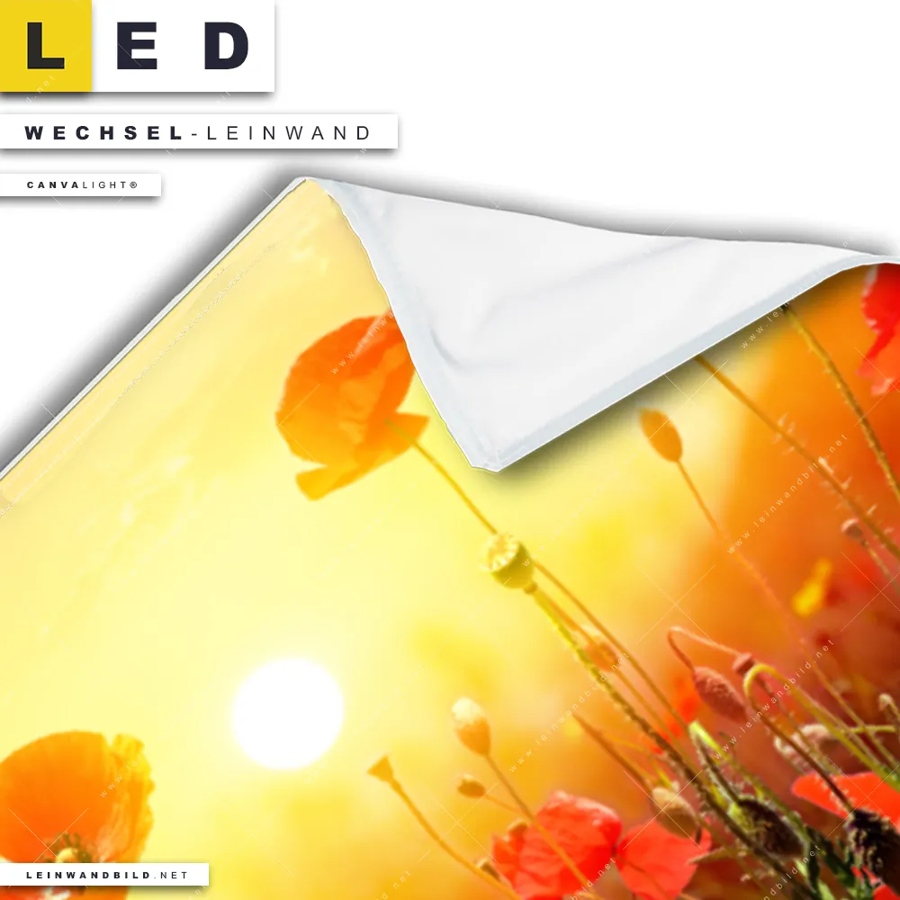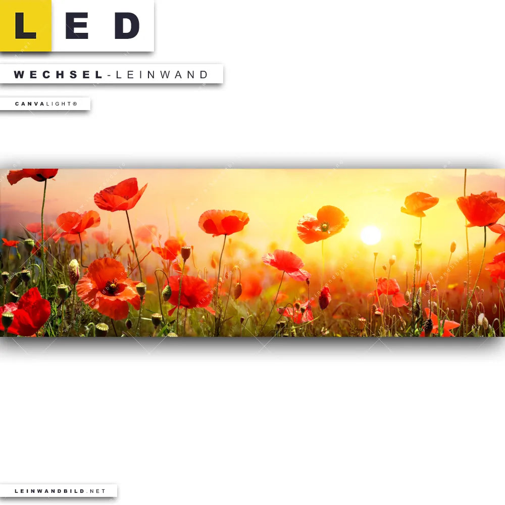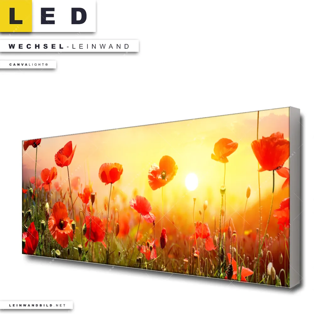 LED Wechsel-Leinwand Canvalight® TEX | Mohnblumenfeld bei Sonnenuntergang | Panorama