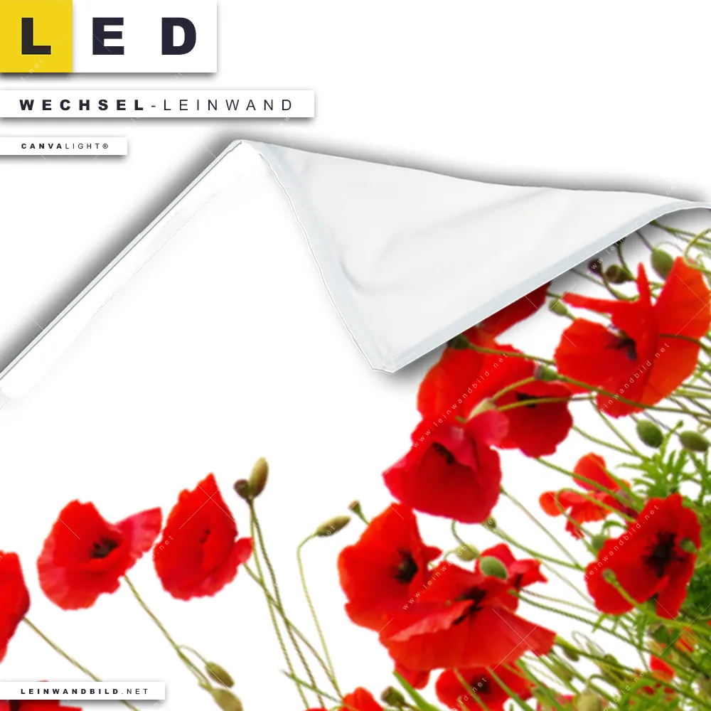 Du bist auf der Suche nach einer Landschaften, Blumen - Botanik Wechsel-Leinwand für Dein LED-Leinwandbild im Panorama-Format? Begriffe wie Blume, Botanik, Pflanze, Natur, Mohn, Mohnblume, Wiese haben Dich auf der Suche nach Deiner Ersatz-Leinwand für dein extra breites LED Wandbild mit wechselbarer Leinwand inspiriert? Farben wie Rot, Grün, Weiss dürfen auf Deinem neuen Wechselmotiv für Dein XXL Leinwand-LED-Bild nicht fehlen und Leinwände im Natürlich - Realistisch Stil für Leuchtbilder passen perfekt zu Deinem Einrichtungsstil?