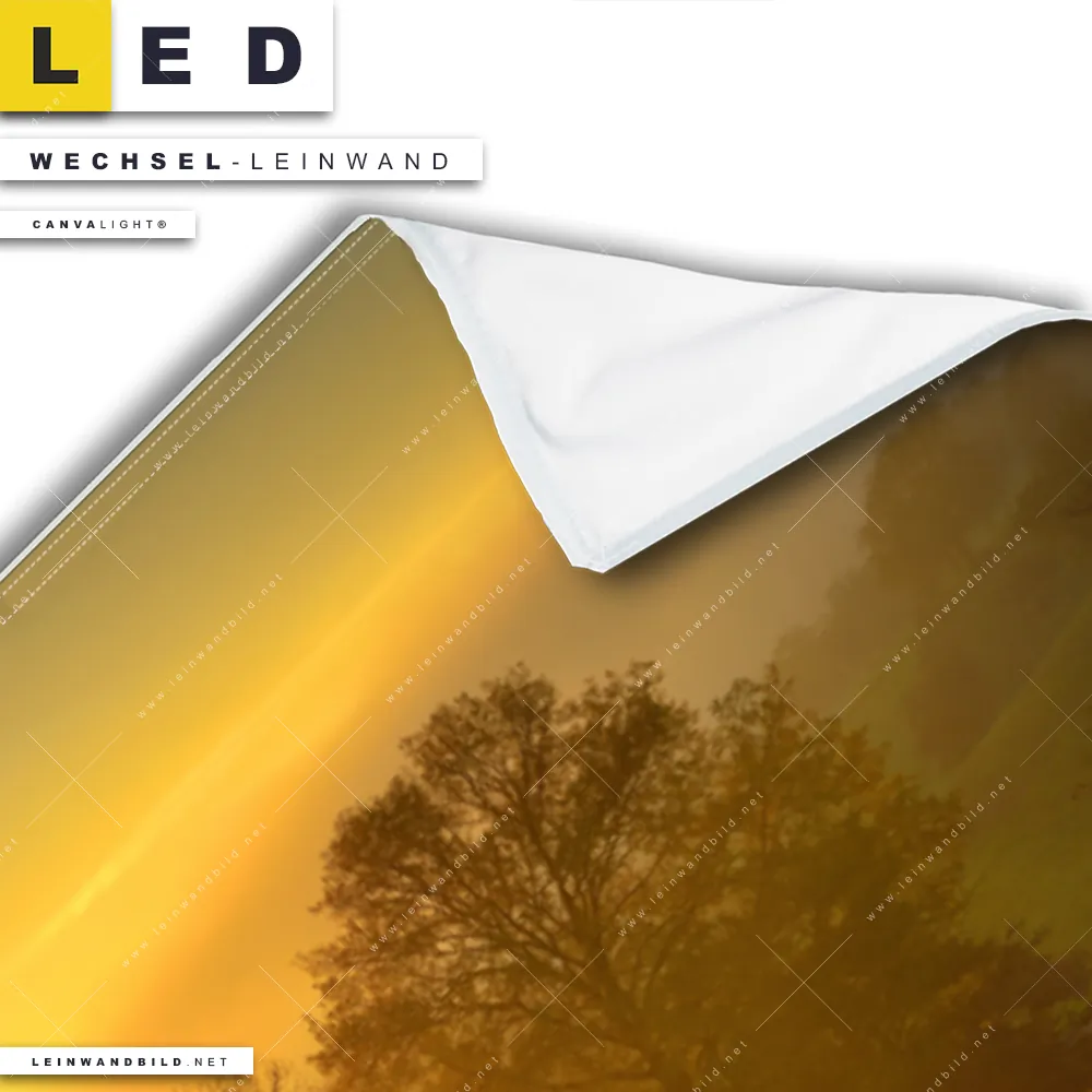 Du bist auf der Suche nach einer Landschaften Wechsel-Leinwand für Dein LED-Leinwandbild im Panorama-Format? Begriffe wie Sonnenaufgang, Horizont, Landschaft, Urlaub, Reisen, Nebel, Morgenstimmung, Spaziergang, Hügel haben Dich auf der Suche nach Deiner Ersatz-Leinwand für dein extra breites LED Wandbild mit wechselbarer Leinwand inspiriert? Farben wie Orange dürfen auf Deinem neuen Wechselmotiv für Dein XXL Leinwand-LED-Bild nicht fehlen und Leinwände im Natürlich - Realistisch Stil für Leuchtbilder passen perfekt zu Deinem Einrichtungsstil?