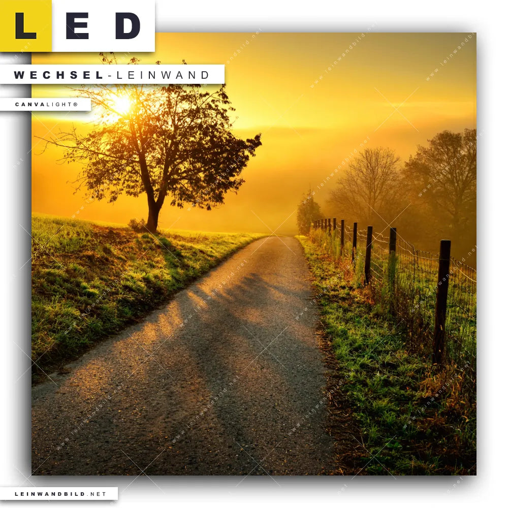 Du bist auf der Suche nach einer Landschaften Wechsel-Leinwand für Dein LED-Leinwandbild im Quadratischen Format? Begriffe wie Sonnenaufgang, Horizont, Landschaft, Urlaub, Reisen, Nebel, Morgenstimmung, Spaziergang, Hügel haben Dich auf der Suche nach Deiner Ersatz-Leinwand für dein LED Wandbild mit wechselbarer Leinwand inspiriert? Farben wie Orange dürfen auf Deinem neuen Wechselmotiv für Dein XXL Leinwand-LED-Bild nicht fehlen und Leinwände im Natürlich - Realistisch Stil für Leuchtbilder passen perfekt zu Deinem Einrichtungsstil?