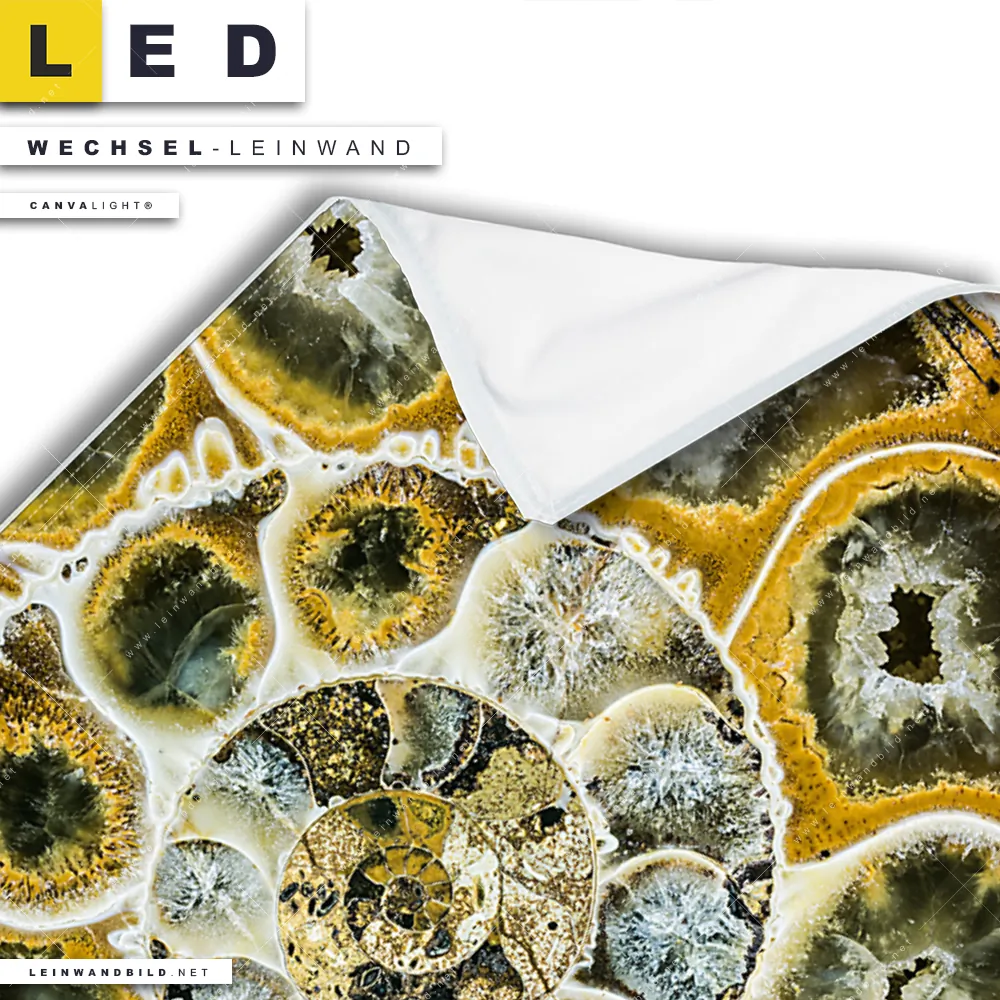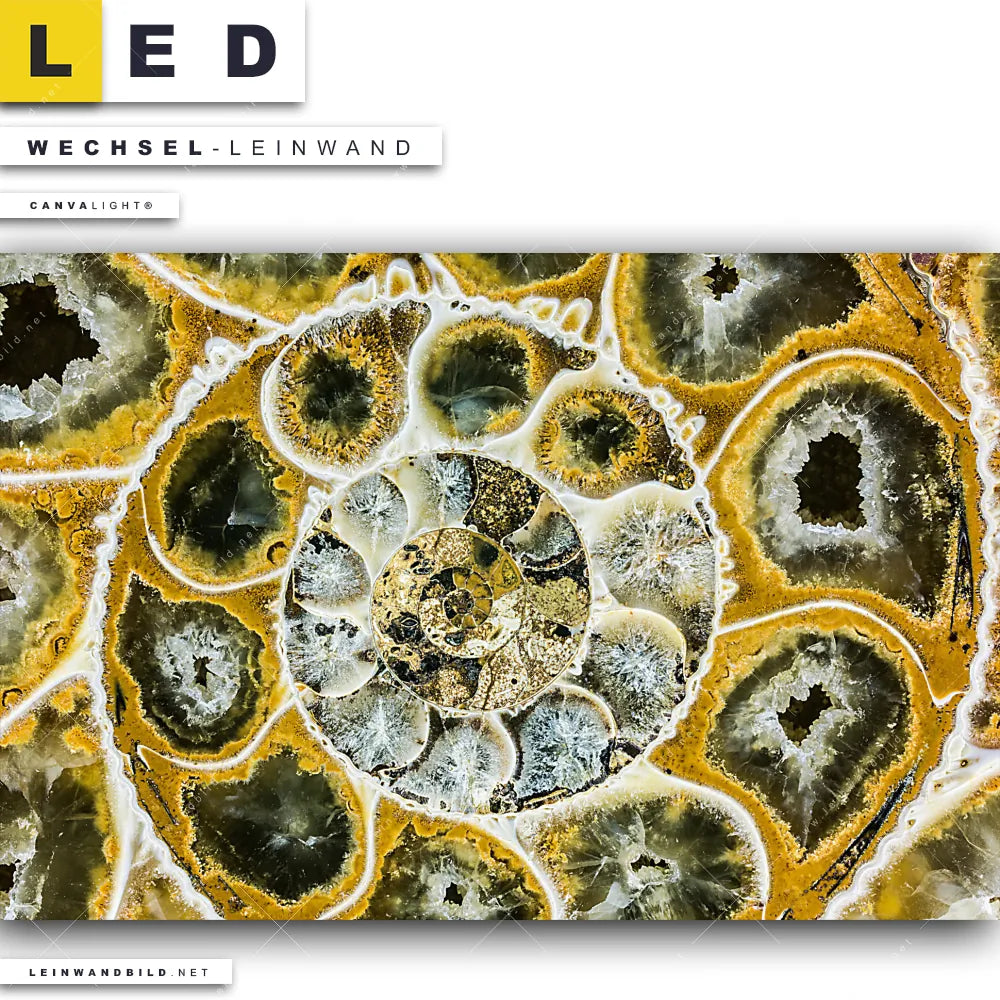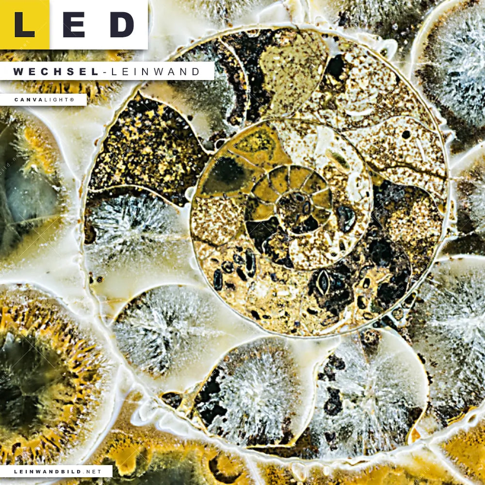 Du bist auf der Suche nach einer Muster - Texturen Wechsel-Leinwand für Dein LED-Leinwandbild im Querformat? Begriffe wie Muschel, Nahaufnahme, Makro, Fossil, close up, Spiarale haben Dich auf der Suche nach Deiner Ersatz-Leinwand für dein breites LED Wandbild mit wechselbarer Leinwand inspiriert? Farben wie Gold, Braun, Beige, Ocker, Hellblau dürfen auf Deinem neuen Wechselmotiv für Dein XXL Leinwand-LED-Bild nicht fehlen und Leinwände im Abstrakt, Modern Art, Geometrisch Stil für Leuchtbilder passen perfekt zu Deinem Einrichtungsstil?