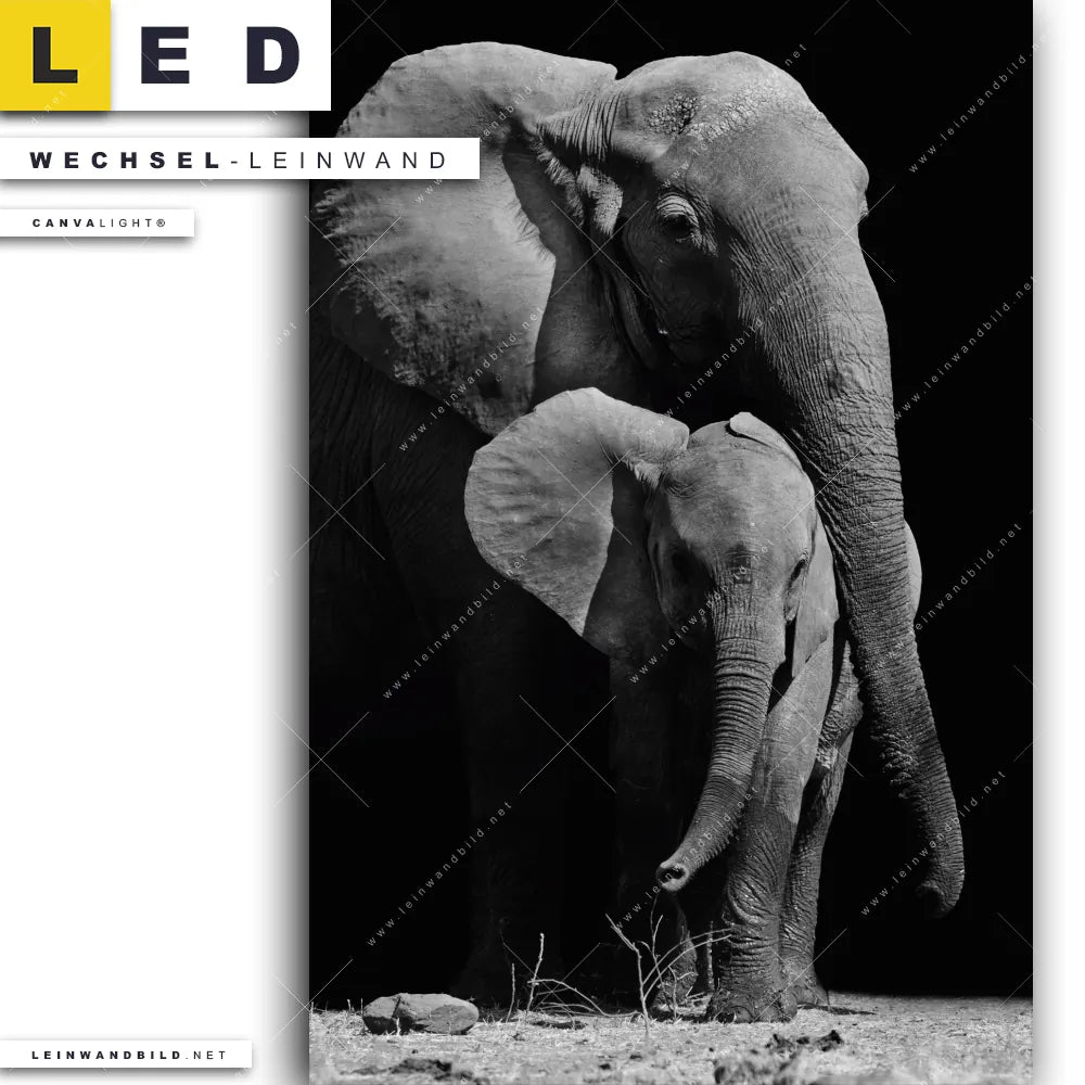 LED Wechsel-Leinwand Canvalight® TEX | Mutter & Baby Elefant | Hochformat