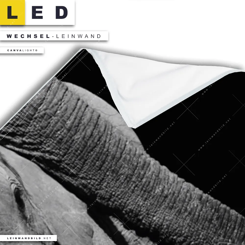 Du bist auf der Suche nach einer Tierwelt Wechsel-Leinwand für Dein LED-Leinwandbild im Panorama-Format? Begriffe wie Afrika, wild, Safari, Elefant, Baby, Schutz, Dschungel haben Dich auf der Suche nach Deiner Ersatz-Leinwand für dein extra breites LED Wandbild mit wechselbarer Leinwand inspiriert? Farben wie Weiss, Schwarz dürfen auf Deinem neuen Wechselmotiv für Dein XXL Leinwand-LED-Bild nicht fehlen und Leinwände im Natürlich - Realistisch, Schwarz - Weiss Stil für Leuchtbilder passen perfekt zu Deinem Einrichtungsstil?
