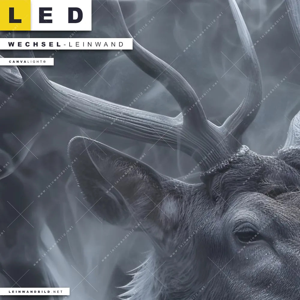 LED Wechsel-Leinwand Canvalight® TEX | Mystischer Hirsch im Nebel | Panorama