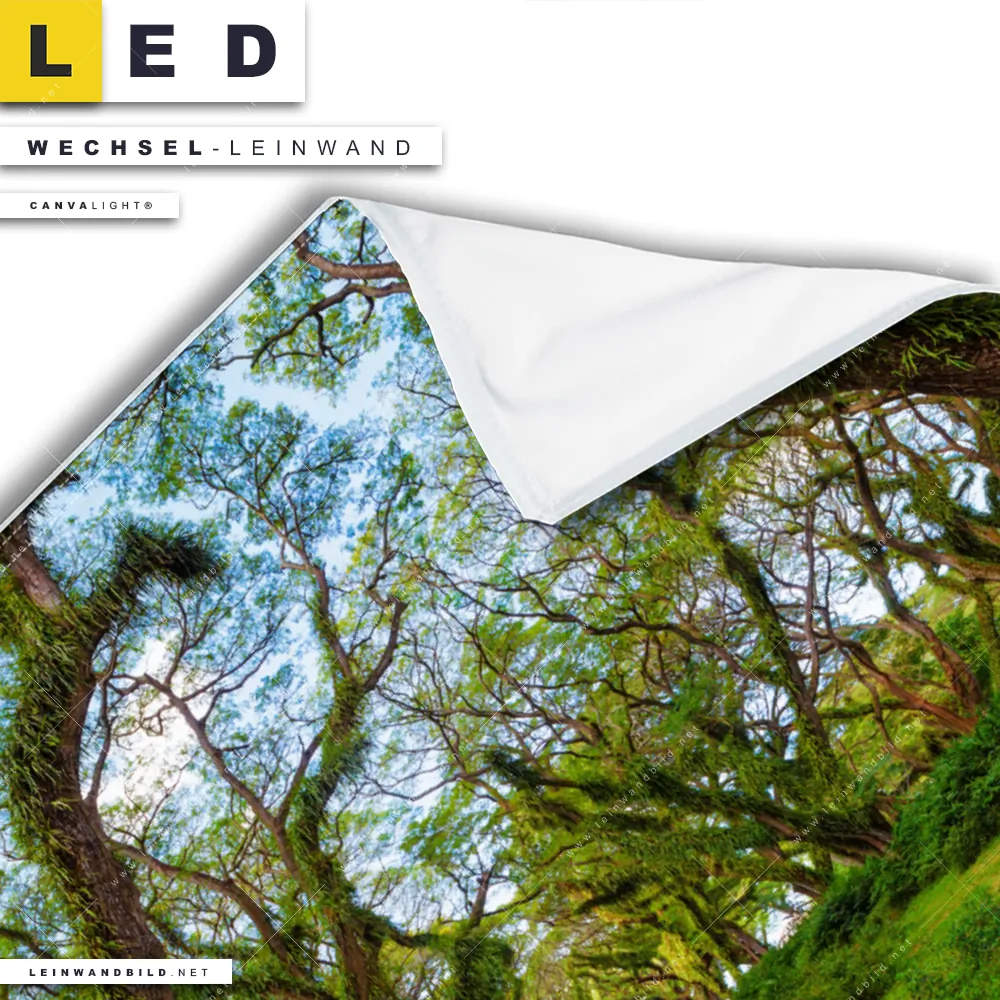 Dann sollte die Wechsel-Leinwand Canvalight® TEX | Mystischer Wald | Querformat den Weg zu Dir finden. Die Austausch-Leinwand De Djawatan Forest Indonesien - passend für unsere stufenlos dimmbaren, steckerfertigen Leinwandbilder im Leuchtrahmen mit Fernbedienung und optionaler Farbtemperatursteuerung - fügt sich als Eye-Catcher harmonisch in jedes Wohnzimmer - Schlafzimmer, Flur - Eingangsbereich, Büro - Kanzlei, Bar - Gastronomie, Arzt - Praxis Raumkonzept ein.