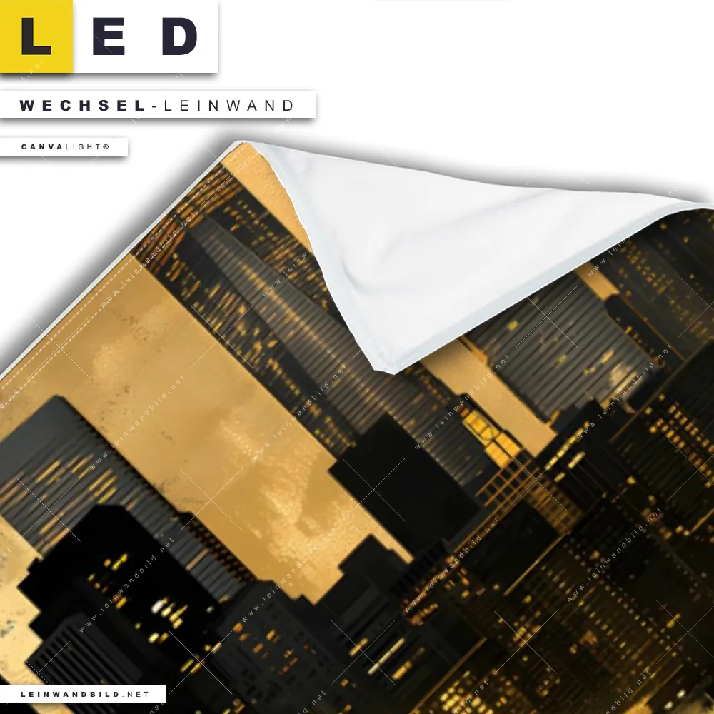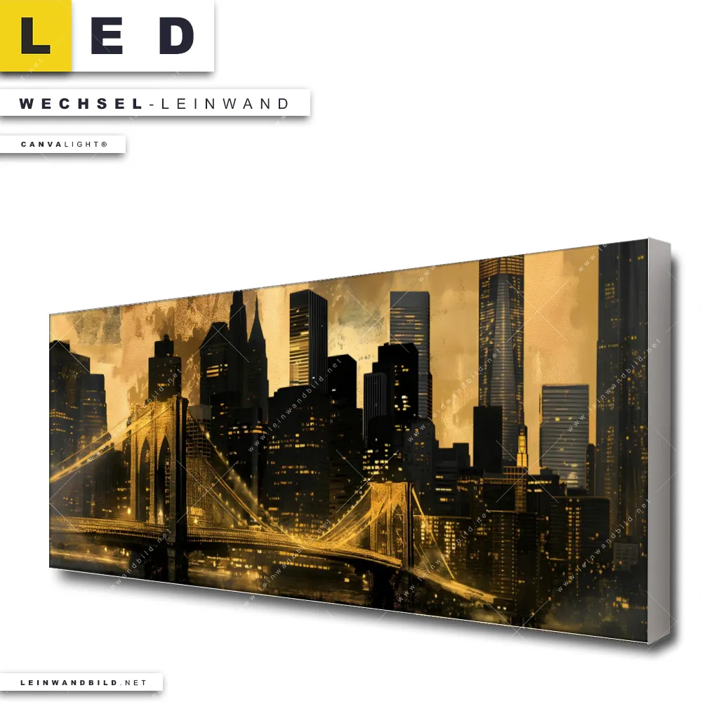 Du bist auf der Suche nach einer Städte - Skylines Wechsel-Leinwand für Dein LED-Leinwandbild im Panorama-Format? Begriffe wie Skyline, Metropole, Häuser, Wolkenkratzer, Hochhäuser, Stadt, Gebäude, Malerei, Brücke haben Dich auf der Suche nach Deiner Ersatz-Leinwand für dein extra breites LED Wandbild mit wechselbarer Leinwand inspiriert? Farben wie Schwarz, Gold dürfen auf Deinem neuen Wechselmotiv für Dein XXL Leinwand-LED-Bild nicht fehlen und Leinwände im Modern Art, Abstrakt Stil für Leuchtbilder passen perfekt zu Deinem Einrichtungsstil?