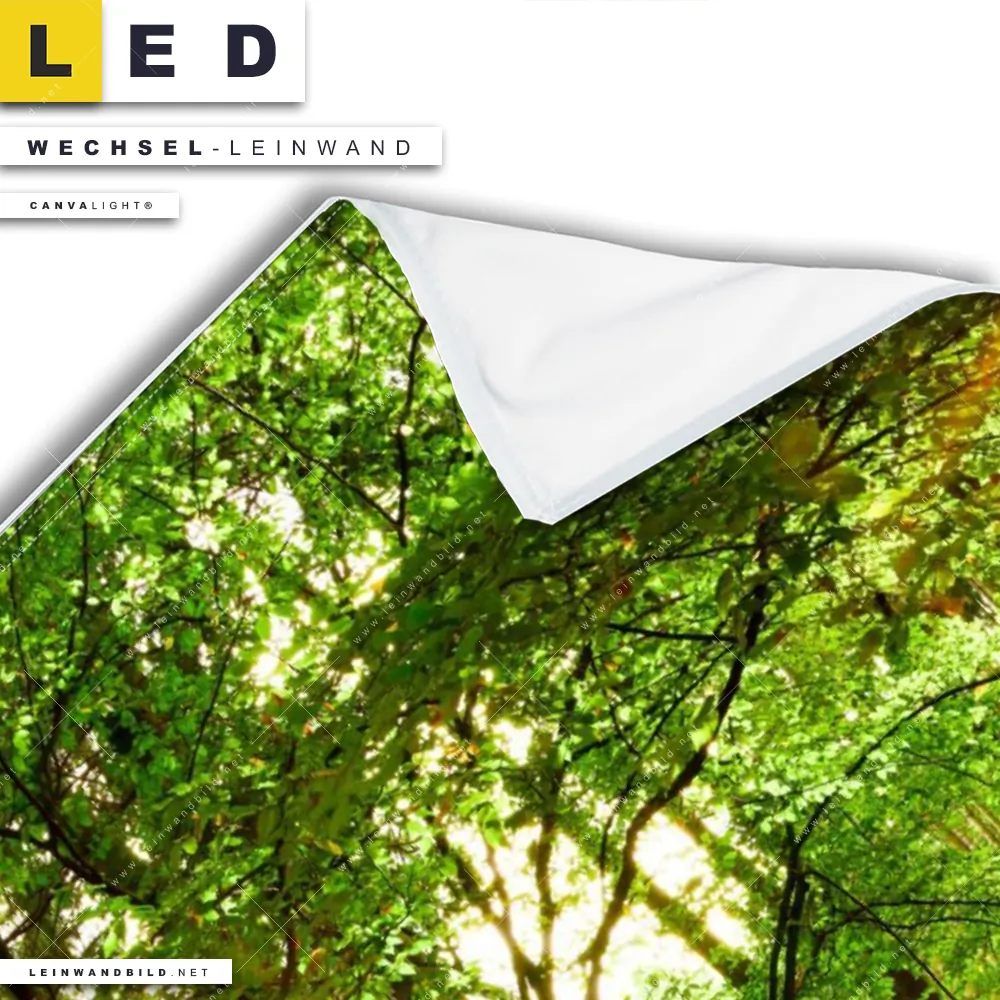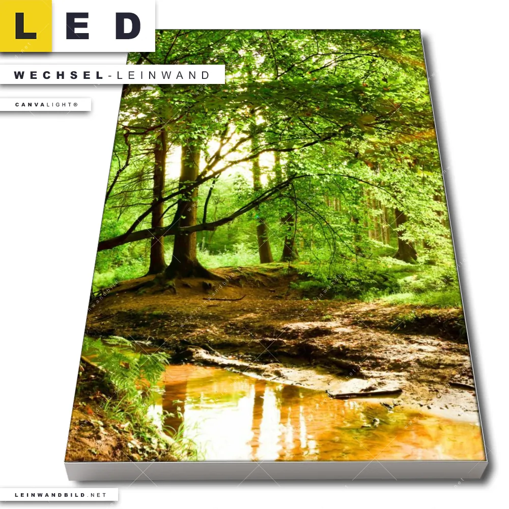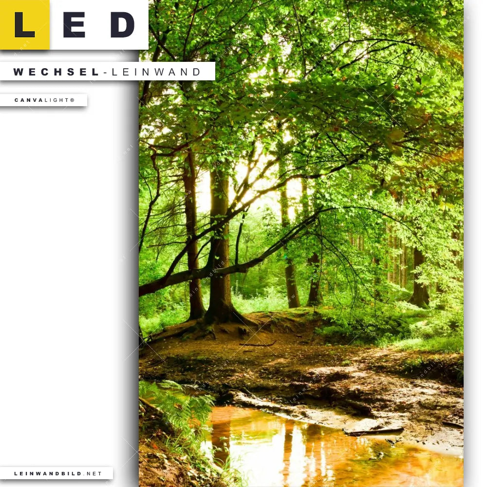 LED Wechsel-Leinwand Canvalight® TEX | Natur pur - Der Wald | Hochformat