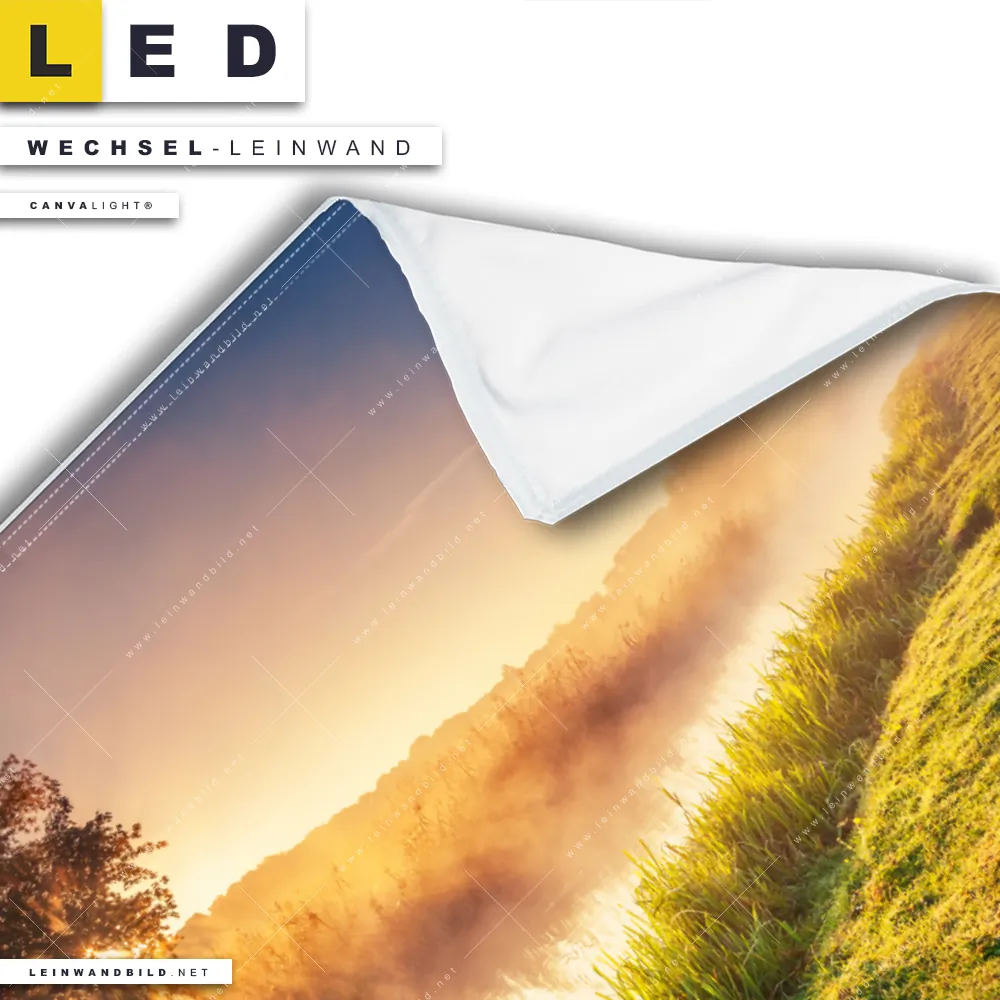 Du bist auf der Suche nach einer Landschaften Wechsel-Leinwand für Dein LED-Leinwandbild im Querformat? Begriffe wie Sonnenuntergang, Sonnenaufgang, Wasser, Horizont, Landschaft, Urlaub, Reisen, Fluss, Nebel, Morgenstimmung haben Dich auf der Suche nach Deiner Ersatz-Leinwand für dein breites LED Wandbild mit wechselbarer Leinwand inspiriert? Farben wie Orange, Weiss, Blau, Braun, Bunt, Beige, Grün, Gold, Hellblau, Hellgrün, Ocker dürfen auf Deinem neuen Wechselmotiv für Dein XXL Leinwand-LED-Bild nicht fehlen und Leinwände im Natürlich - Realistisch Stil für Leuchtbilder passen perfekt zu Deinem Einrichtungsstil?