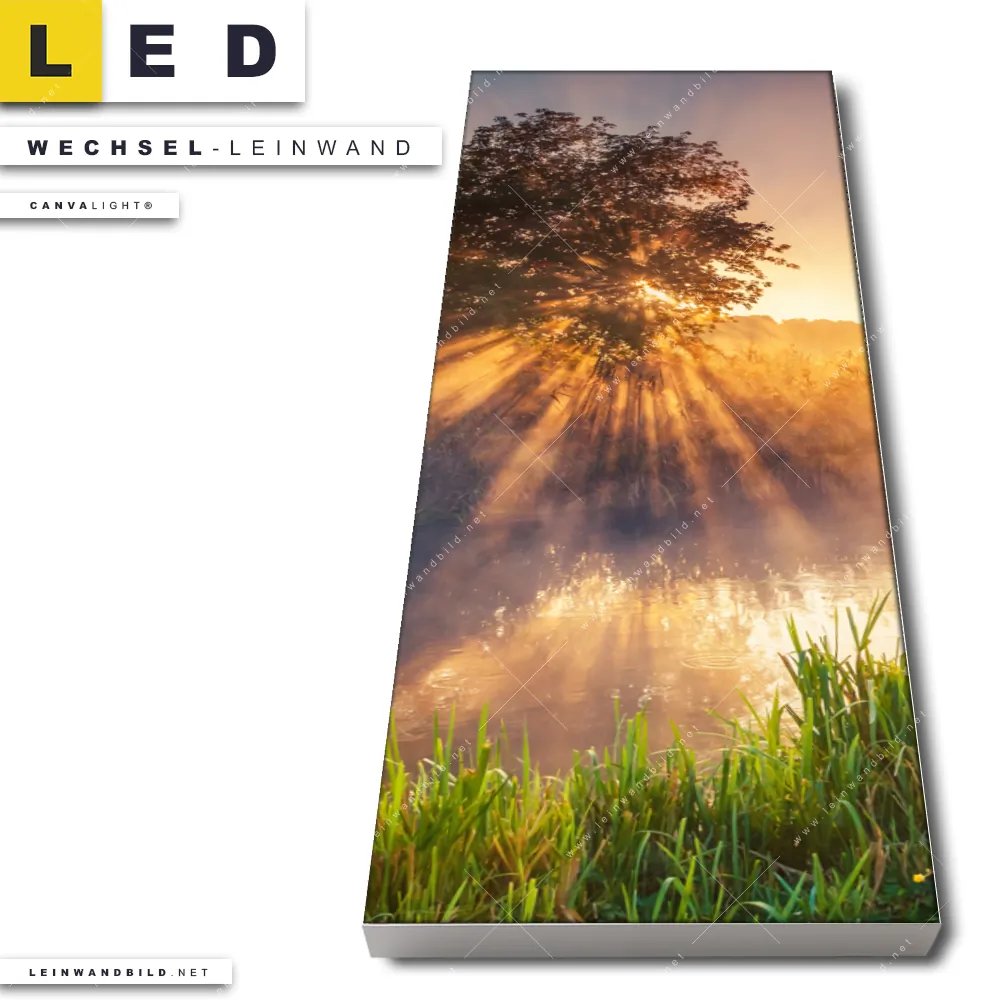 Du bist auf der Suche nach einer Landschaften Wechsel-Leinwand für Dein LED-Leinwandbild im Schmalen Format? Begriffe wie Sonnenuntergang, Sonnenaufgang, Wasser, Horizont, Landschaft, Urlaub, Reisen, Fluss, Nebel, Morgenstimmung haben Dich auf der Suche nach Deiner Ersatz-Leinwand für dein LED Wandbild im Panorama-Hochformat mit wechselbarer Leinwand inspiriert? Farben wie Orange, Weiss, Blau, Braun, Bunt, Beige, Grün, Gold, Hellblau, Hellgrün, Ocker dürfen auf Deinem neuen Wechselmotiv für Dein XXL Leinwand-LED-Bild nicht fehlen und Leinwände im Natürlich - Realistisch Stil für Leuchtbilder passen perfekt zu Deinem Einrichtungsstil?