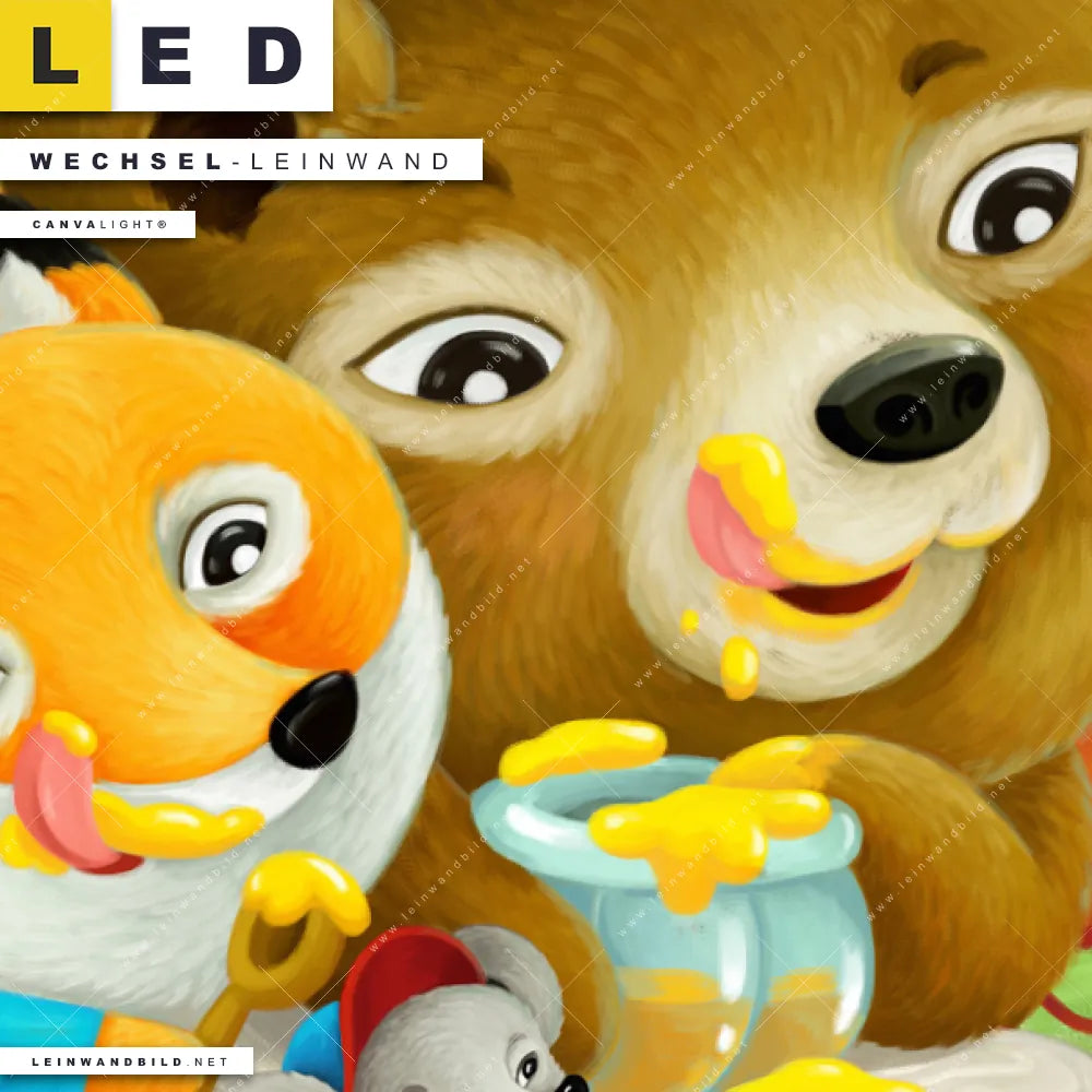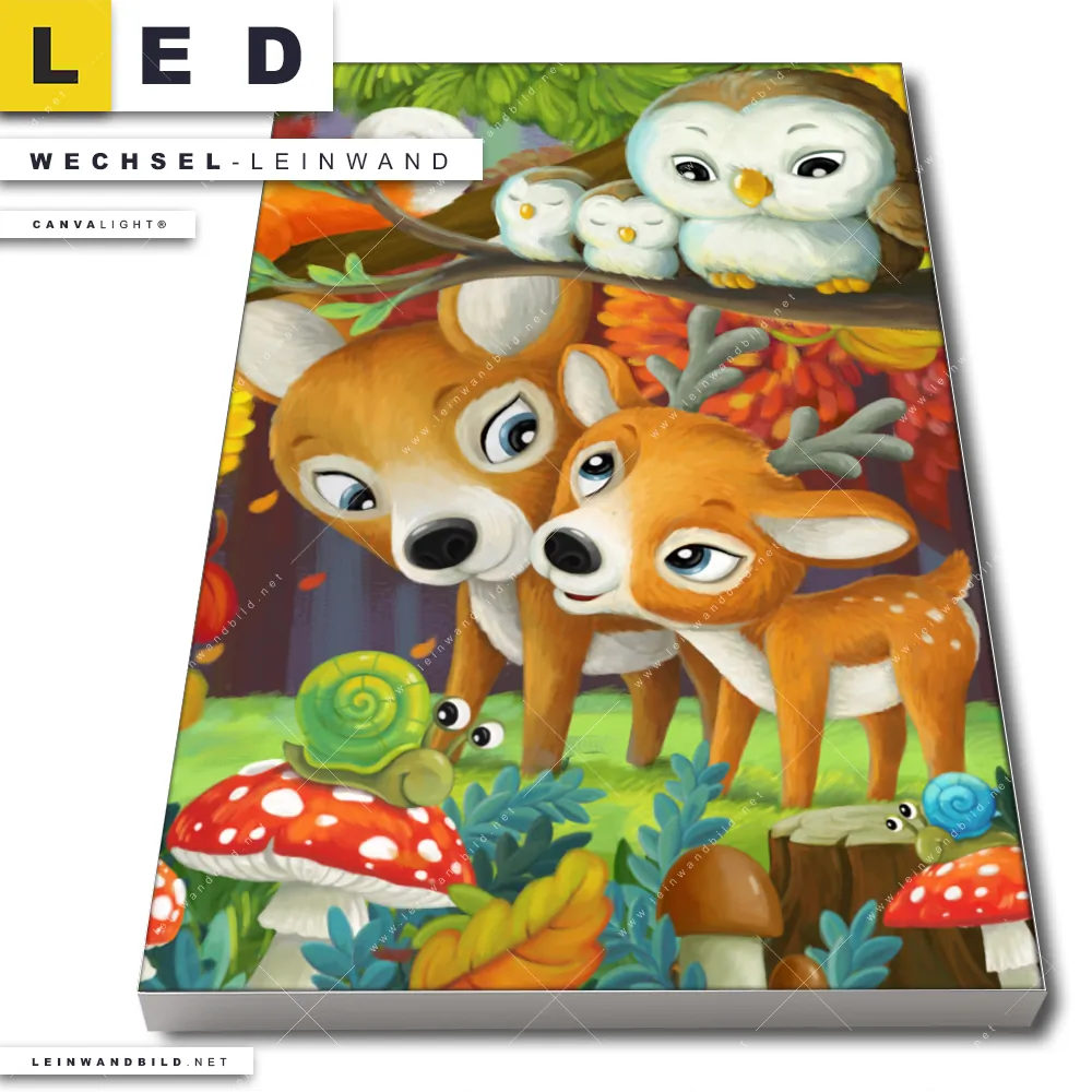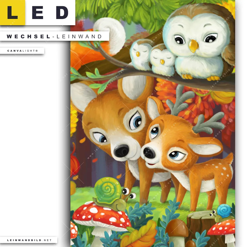LED Wechsel-Leinwand Canvalight® TEX | Niedliche Waldtiere | Hochformat