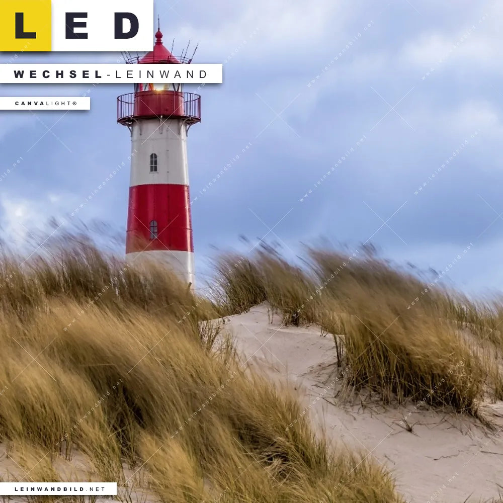 LED Wechsel-Leinwand Canvalight® TEX | Nordsee Leuchtturm | Hochformat