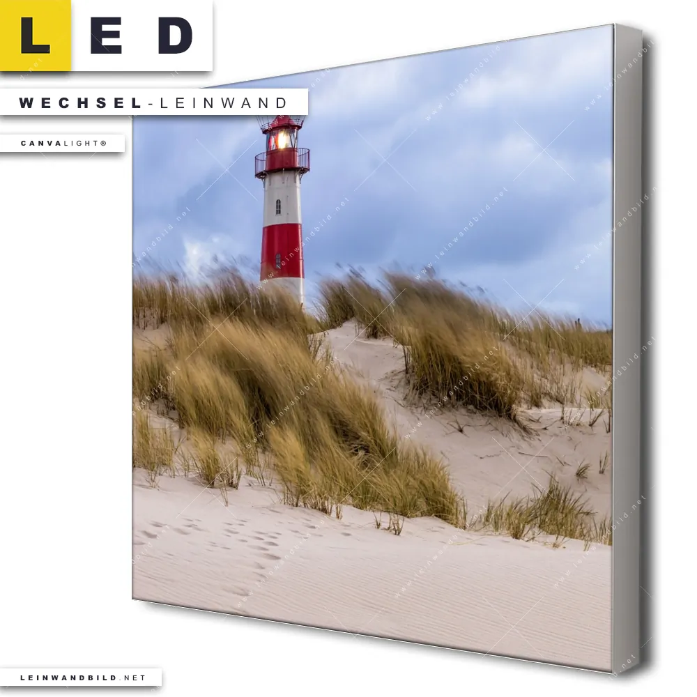 LED Wechsel-Leinwand Canvalight® TEX | Nordsee Leuchtturm | Quadrat