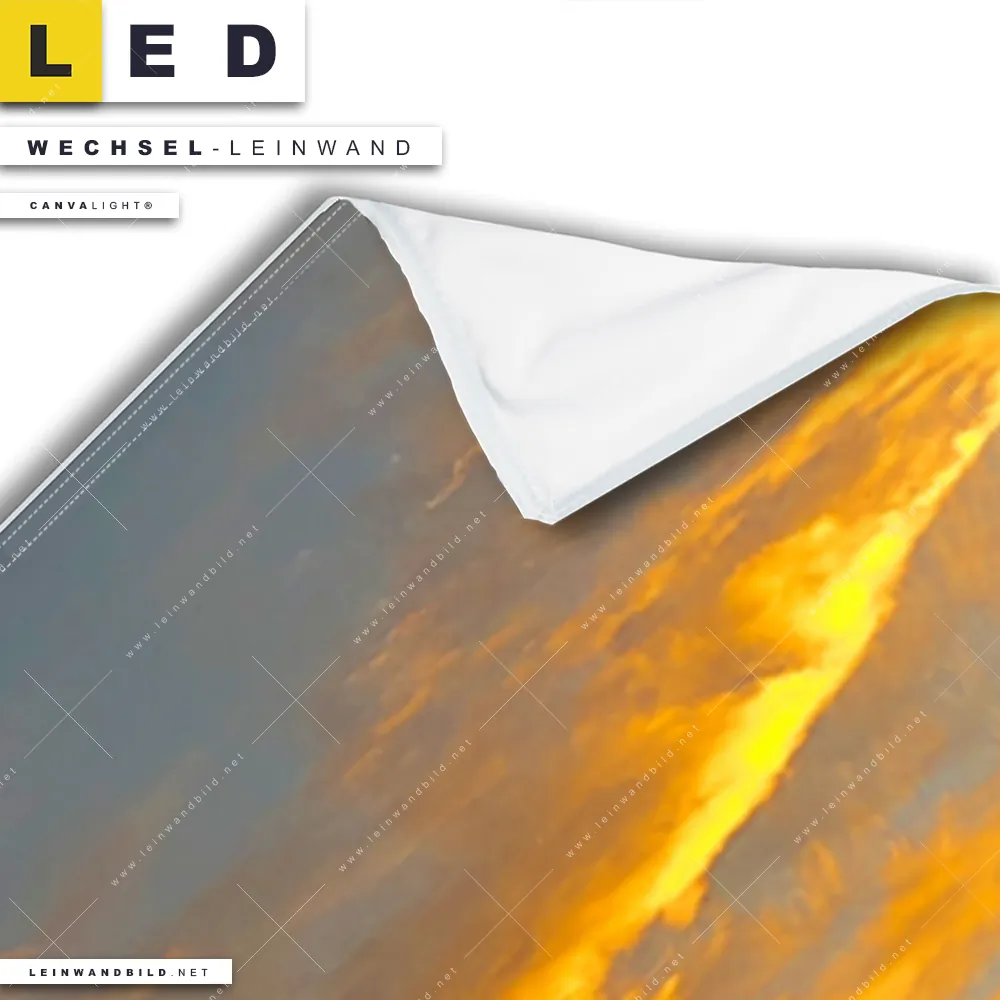Bitte beachte, dass die Farben, der auf dem Monitor abgebildeten Abendstimmung an der deutschen Küste Darstellung, möglicherweise von den Originalfarben deiner Canvalight® TEX Wechsel-Leinwand abweichen können.