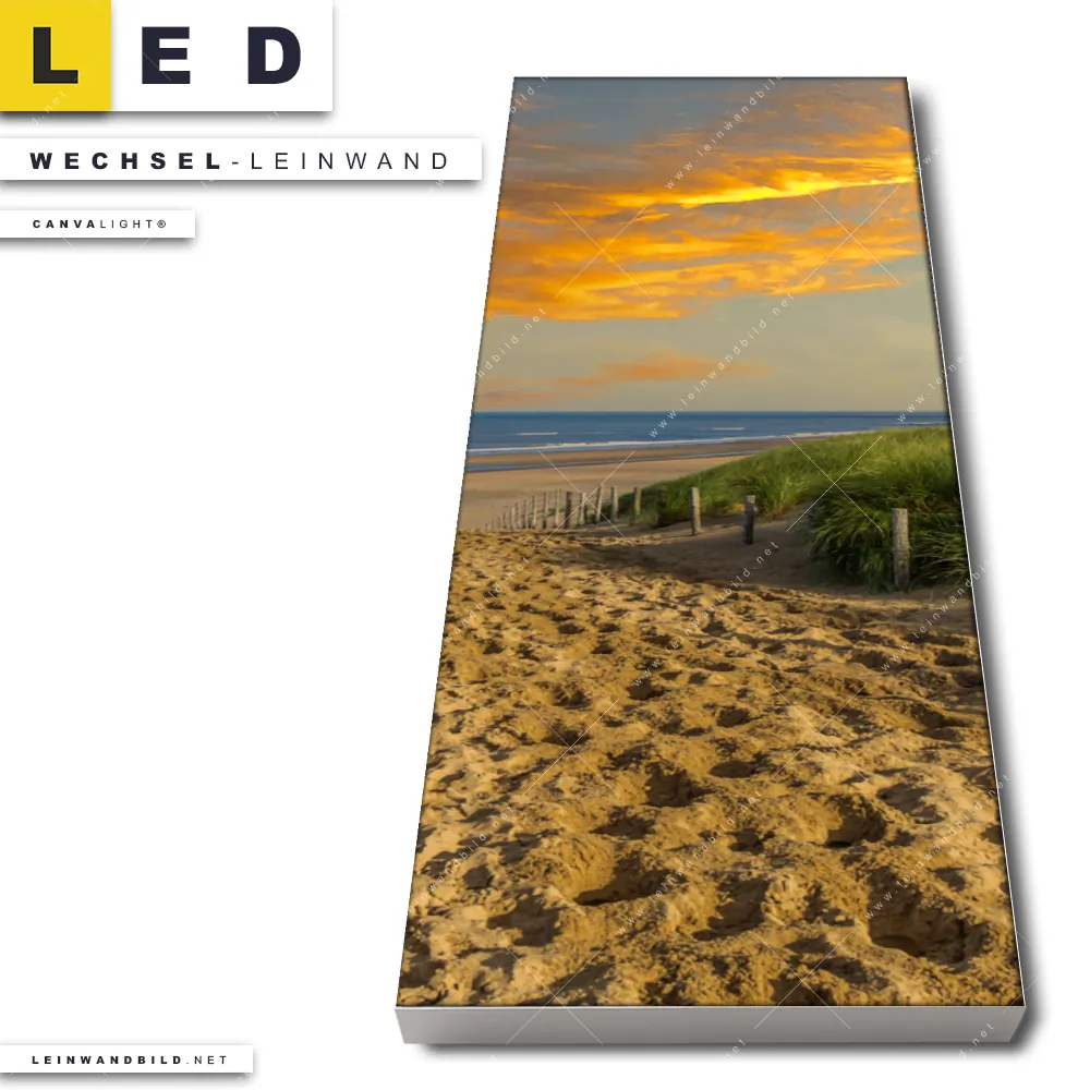 Du konfigurierst Deine individuelle LED Wechsel-Leinwand Canvalight® TEX | Nordseeküste | Schmal und wir produzieren sie NEU für Dich. Unsere Strand - Meer, Landschaften Austausch-Fotoleinwände für Canvalight® LED Bilder sind KEINE Lagerware. Du bist Dir unsicher, welches Motiv oder Format das richtige für dein individuelles LED Wechselmotiv auf Leinwand ist, dann helfen wir dir gerne weiter und beraten dich!