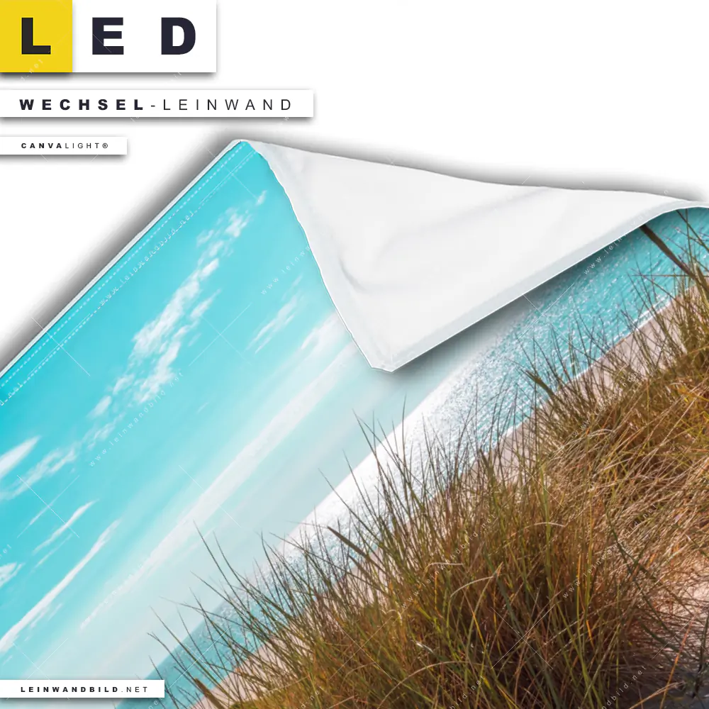 Du konfigurierst Deine individuelle LED Wechsel-Leinwand Canvalight® TEX | Nordseelandschaft auf Sylt | Quadrat und wir produzieren sie NEU für Dich. Unsere Landschaften, Strand - Meer Austausch-Fotoleinwände für Canvalight® LED Bilder sind KEINE Lagerware. Du bist Dir unsicher, welches Motiv oder Format das richtige für dein individuelles LED Wechselmotiv auf Leinwand ist, dann helfen wir dir gerne weiter und beraten dich!