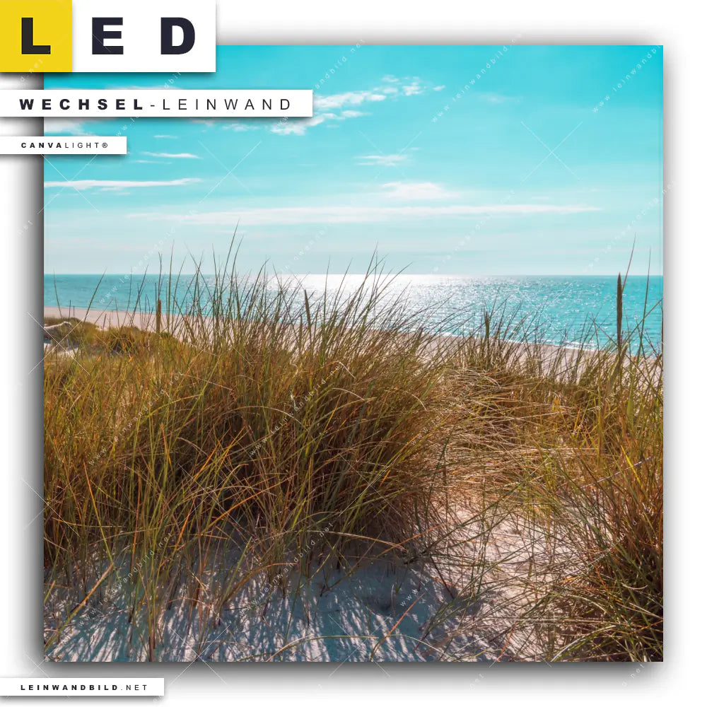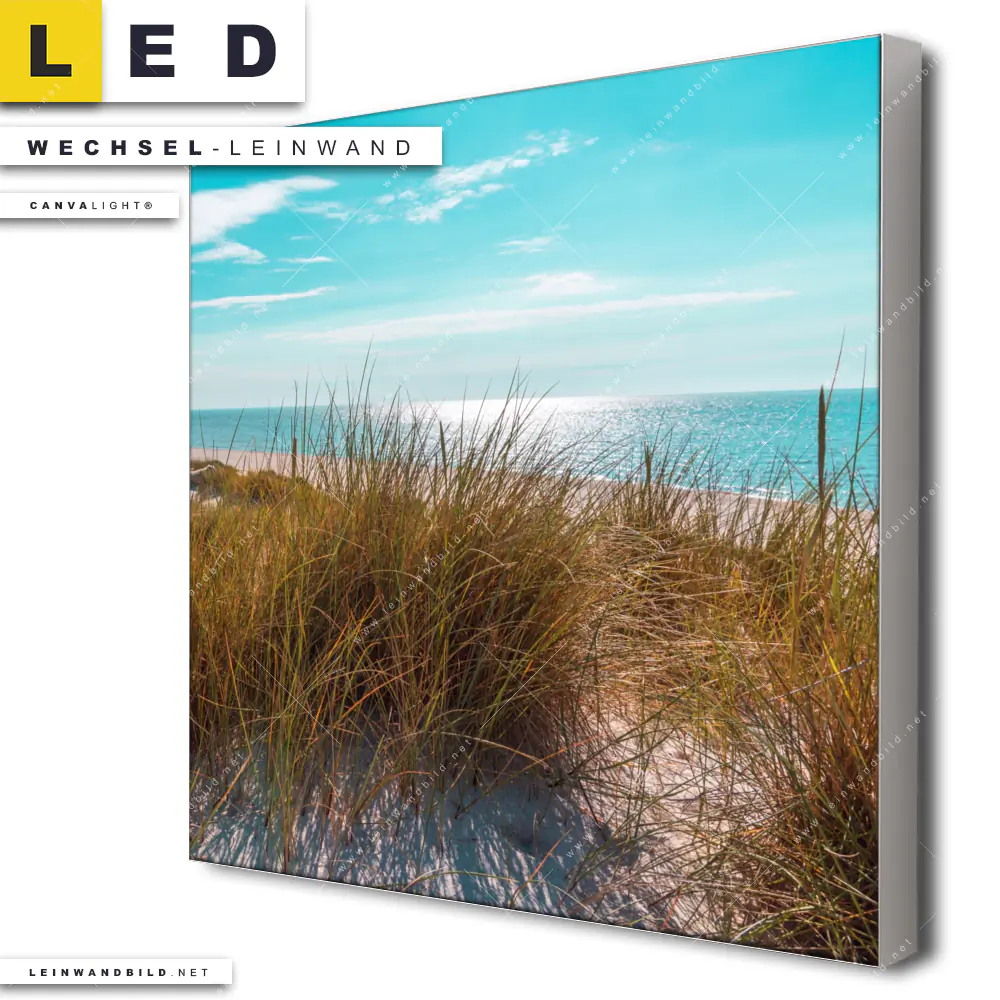 Du bist auf der Suche nach einer Landschaften, Strand - Meer Wechsel-Leinwand für Dein LED-Leinwandbild im Quadratischen Format? Begriffe wie Deutschland, Frühling, Sommer, Dünen, Gräser, Nordsee, Ostsee, Urlaub, Meer, Strand haben Dich auf der Suche nach Deiner Ersatz-Leinwand für dein LED Wandbild mit wechselbarer Leinwand inspiriert? Farben wie Beige, Blau, Türkis, Braun dürfen auf Deinem neuen Wechselmotiv für Dein XXL Leinwand-LED-Bild nicht fehlen und Leinwände im Retro - Vintage, Natürlich - Realistisch Stil für Leuchtbilder passen perfekt zu Deinem Einrichtungsstil?