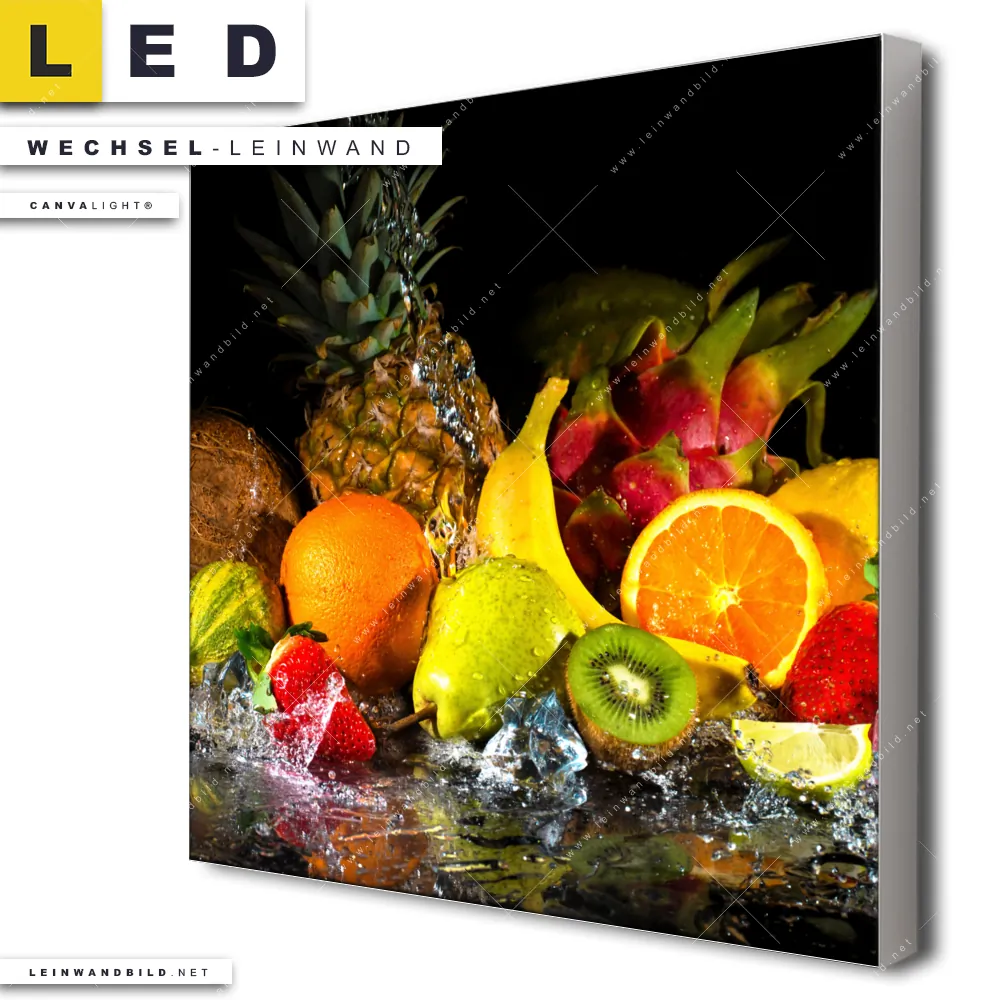 LED Wechsel-Leinwand Canvalight® TEX | Obst-in spritzendem Wasser | Quadrat