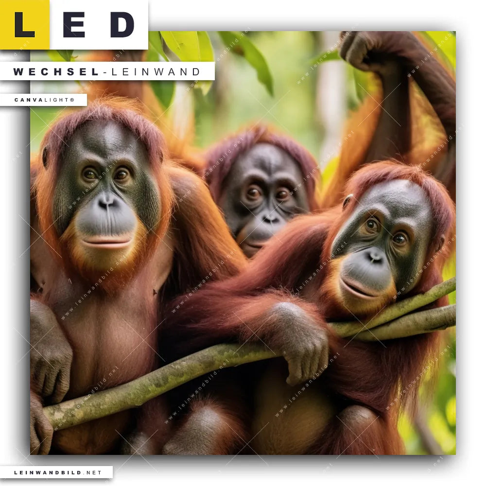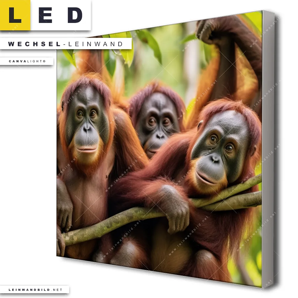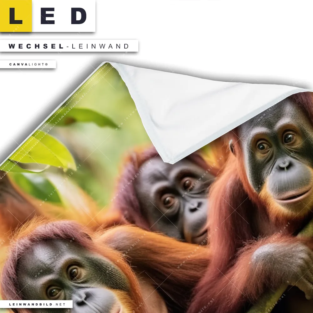 LED Wechsel-Leinwand Canvalight® TEX | Orang Utan Familie im Regenwald | Quadrat