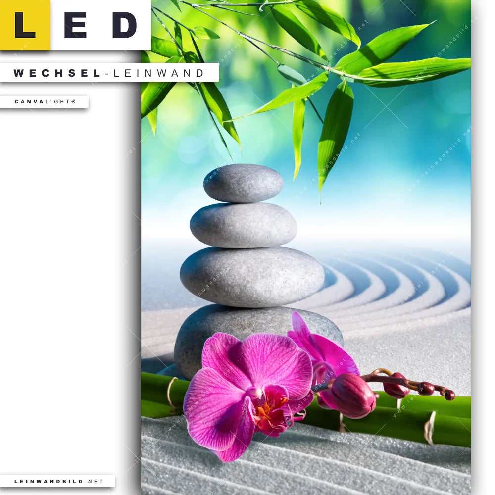 LED Wechsel-Leinwand Canvalight® TEX | Orchidee & Zensteine | Hochformat