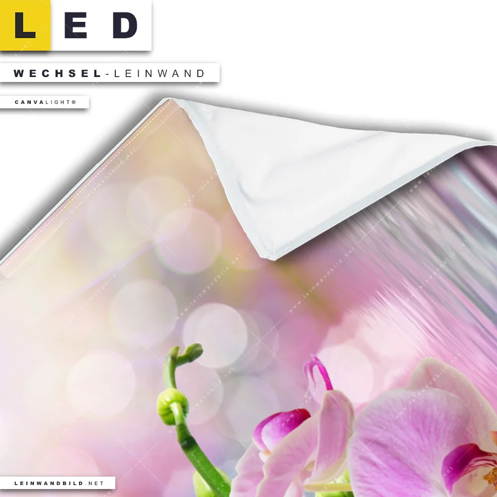 Du konfigurierst Deine individuelle LED Wechsel-Leinwand Canvalight® TEX | Orchideen Blüten | Hochformat und wir produzieren sie NEU für Dich. Unsere Blumen - Botanik Austausch-Fotoleinwände für Canvalight® LED Bilder sind KEINE Lagerware. Du bist Dir unsicher, welches Motiv oder Format das richtige für dein individuelles LED Wechselmotiv auf Leinwand ist, dann helfen wir dir gerne weiter und beraten dich!