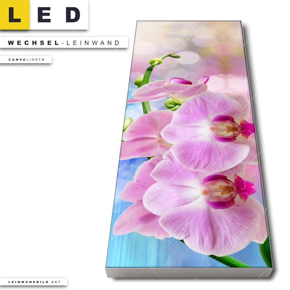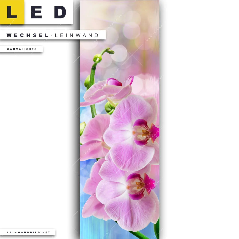 Du konfigurierst Deine individuelle LED Wechsel-Leinwand Canvalight® TEX | Orchideen Blüten | Schmal und wir produzieren sie NEU für Dich. Unsere Blumen - Botanik Austausch-Fotoleinwände für Canvalight® LED Bilder sind KEINE Lagerware. Du bist Dir unsicher, welches Motiv oder Format das richtige für dein individuelles LED Wechselmotiv auf Leinwand ist, dann helfen wir dir gerne weiter und beraten dich!