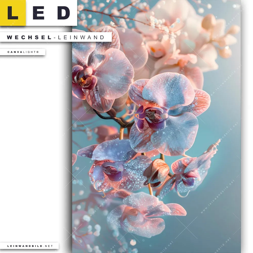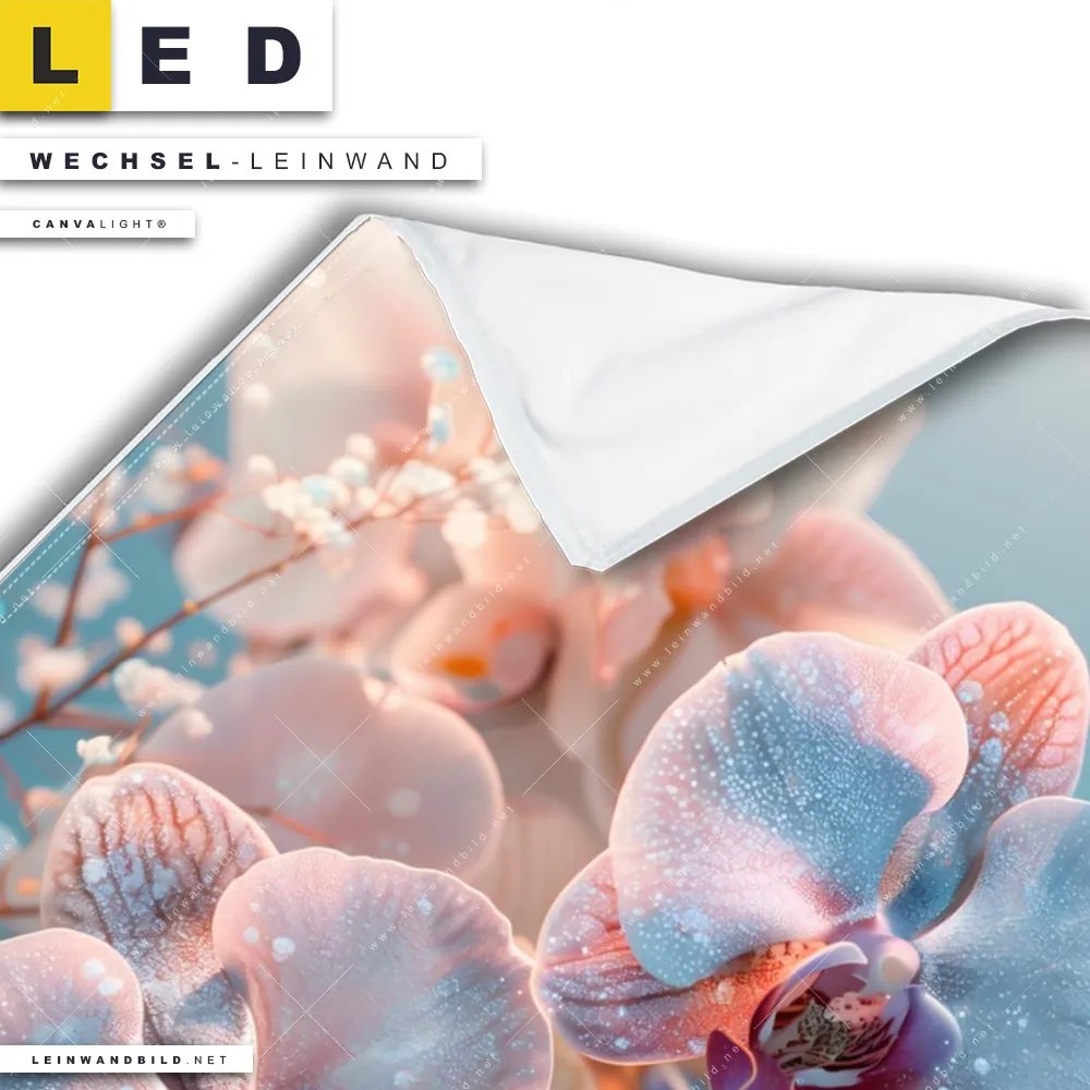LED Wechsel-Leinwand Canvalight® TEX | Orchideenblüten in Pastell | Hochformat