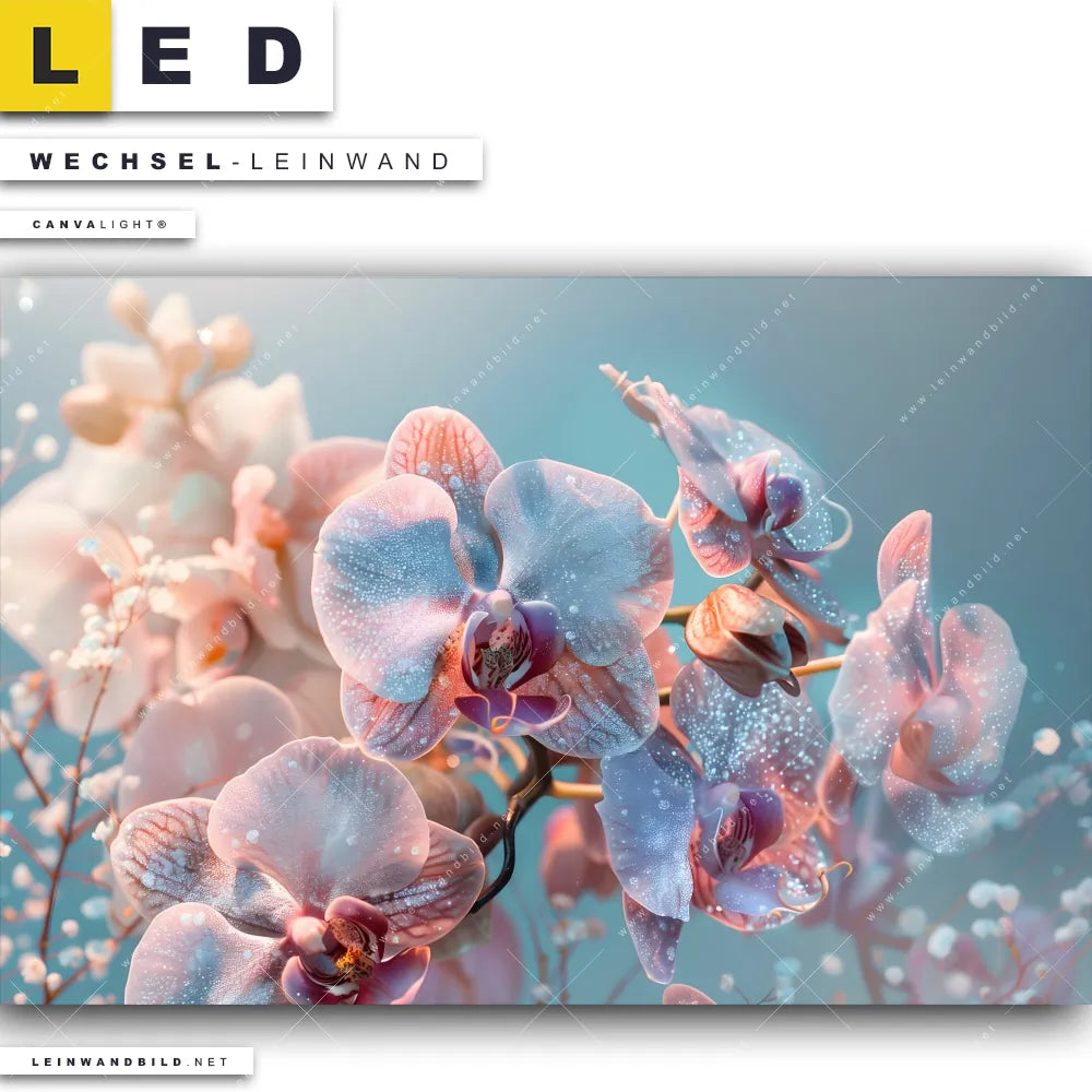 LED Wechsel-Leinwand Canvalight® TEX | Orchideenblüten in Pastell | Querformat