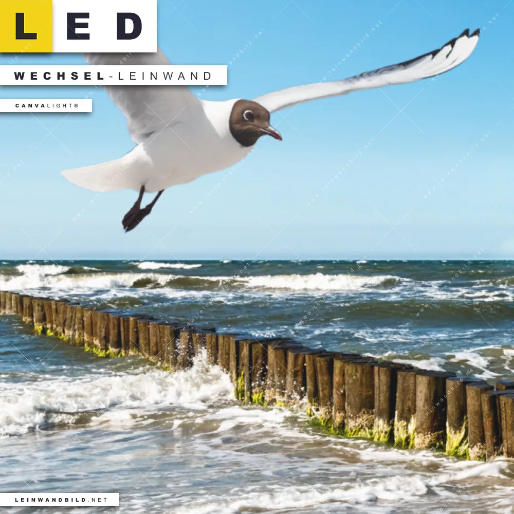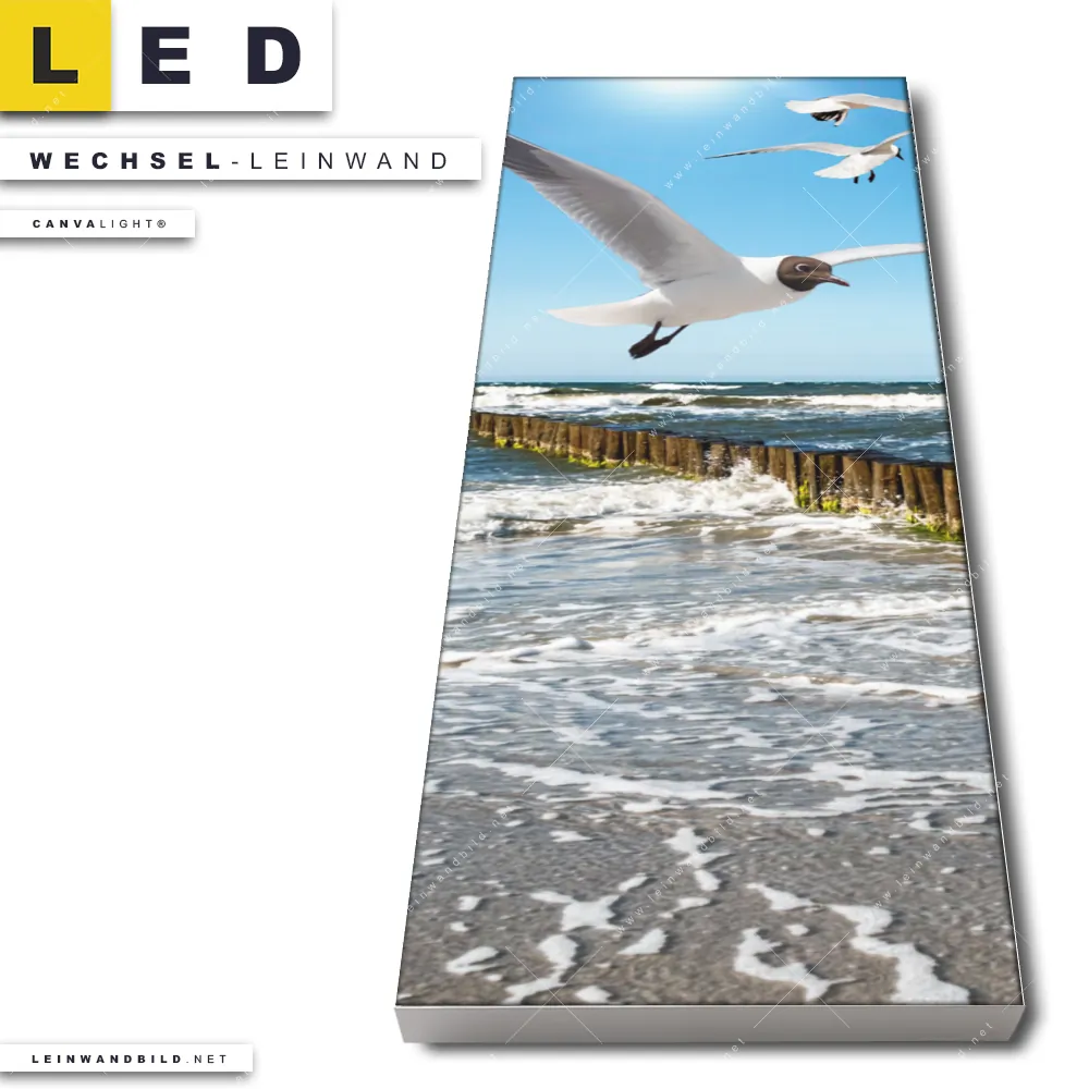 Du bist auf der Suche nach einer Strand - Meer, Landschaften Wechsel-Leinwand für Dein LED-Leinwandbild im Schmalen Format? Begriffe wie Möwe, Deutschland, Frühling, Vogel, Ostsee - Nordsee, Urlaub - Reisen, Sommer, Wellenbrecher, Buhnen, Wellen - Surfen haben Dich auf der Suche nach Deiner Ersatz-Leinwand für dein LED Wandbild im Panorama-Hochformat mit wechselbarer Leinwand inspiriert? Farben wie Orange, Blau, Weiss, Hellblau dürfen auf Deinem neuen Wechselmotiv für Dein XXL Leinwand-LED-Bild nicht fehlen und Leinwände im Natürlich - Realistisch Stil für Leuchtbilder passen perfekt zu Deinem Einrichtungsstil?