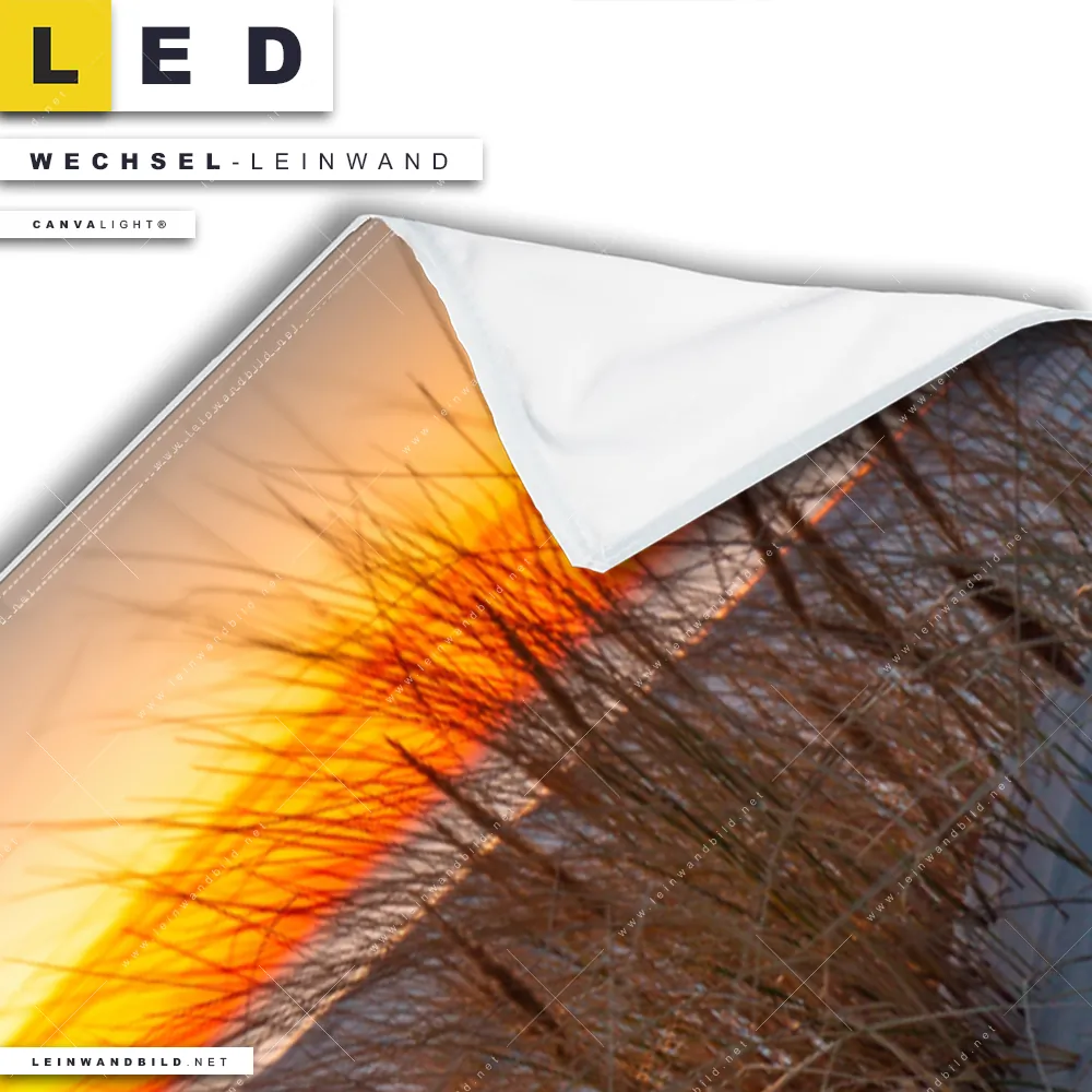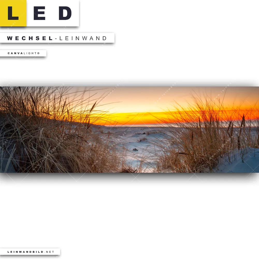 LED Wechsel-Leinwand Canvalight® TEX | Ostseestrand bei Sonnenuntergang | Panorama