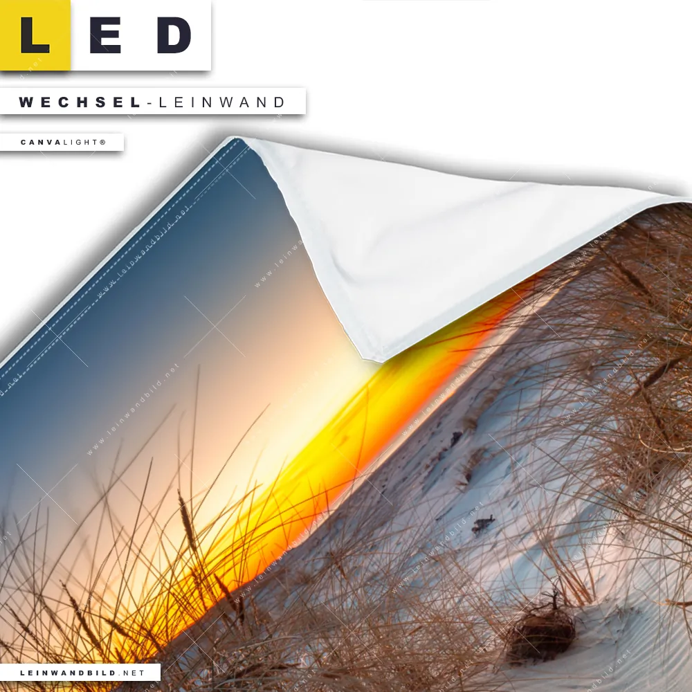 LED Wechsel-Leinwand Canvalight® TEX | Ostseestrand bei Sonnenuntergang | Quadrat