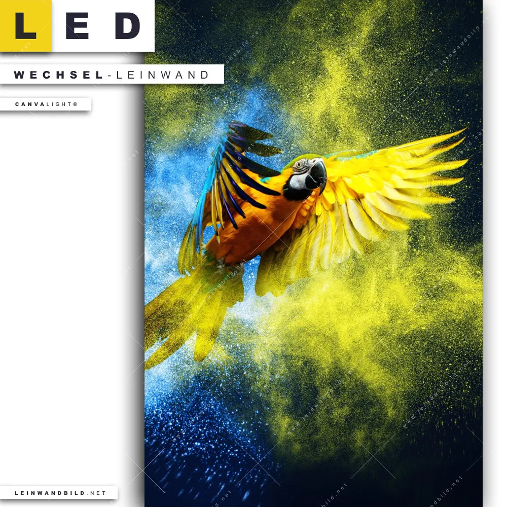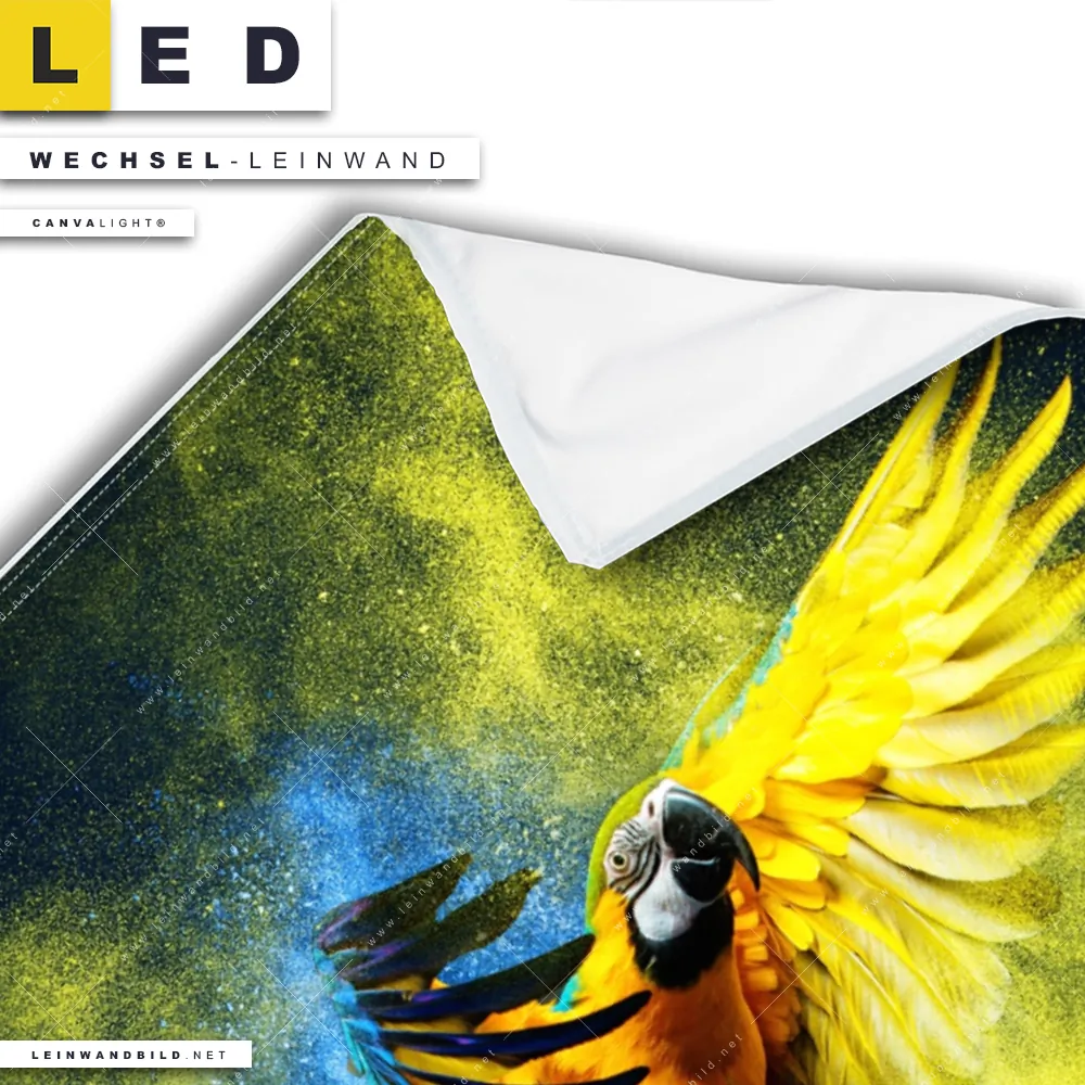 LED Wechsel-Leinwand Canvalight® TEX | Papagei - Farbexplosion | Hochformat