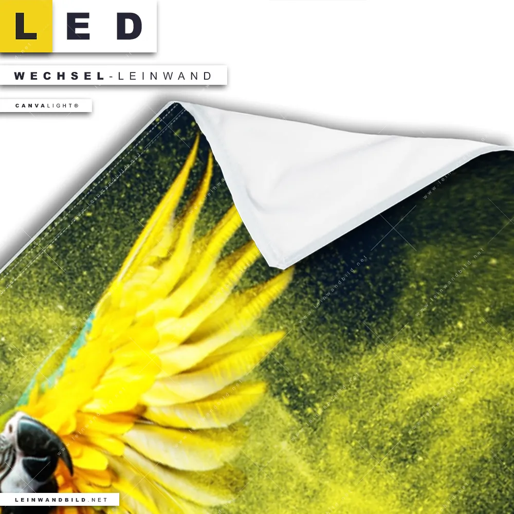 Du konfigurierst Deine individuelle LED Wechsel-Leinwand Canvalight® TEX | Papagei - Farbexplosion | Panorama und wir produzieren sie NEU für Dich. Unsere Tierwelt Austausch-Fotoleinwände für Canvalight® LED Bilder sind KEINE Lagerware. Du bist Dir unsicher, welches Motiv oder Format das richtige für dein individuelles LED Wechselmotiv auf Leinwand ist, dann helfen wir dir gerne weiter und beraten dich!