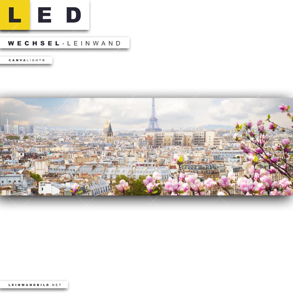 Du bist auf der Suche nach einer Städte - Skylines Wechsel-Leinwand für Dein LED-Leinwandbild im Panorama-Format? Begriffe wie Sehenswürdigkeiten, Frankreich, Paris, Eiffelturm, Skyline, Häuser, Frühling, Magnolie haben Dich auf der Suche nach Deiner Ersatz-Leinwand für dein extra breites LED Wandbild mit wechselbarer Leinwand inspiriert? Farben wie Beige, Pink dürfen auf Deinem neuen Wechselmotiv für Dein XXL Leinwand-LED-Bild nicht fehlen und Leinwände im Retro - Vintage Stil für Leuchtbilder passen perfekt zu Deinem Einrichtungsstil?