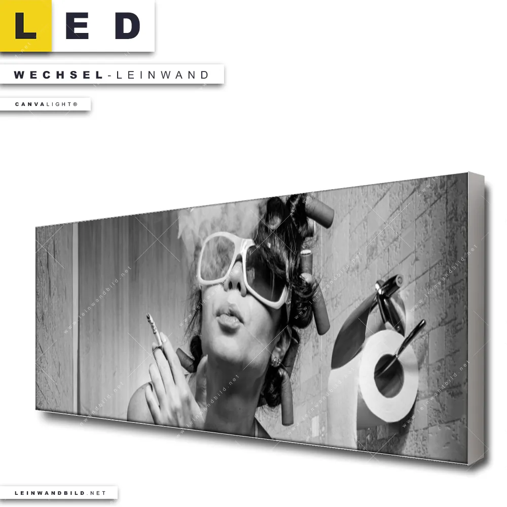 Du bist auf der Suche nach einer Porträts - Menschen Wechsel-Leinwand für Dein LED-Leinwandbild im Panorama-Format? Begriffe wie Frau, Erotik, modern, sexy, Alkohol, Zigarette, rauchen, Toilette, WC, Party, Sonnenbrille haben Dich auf der Suche nach Deiner Ersatz-Leinwand für dein extra breites LED Wandbild mit wechselbarer Leinwand inspiriert? Farben wie Weiss, Schwarz, Grau dürfen auf Deinem neuen Wechselmotiv für Dein XXL Leinwand-LED-Bild nicht fehlen und Leinwände im Modern Art, Schwarz - Weiss Stil für Leuchtbilder passen perfekt zu Deinem Einrichtungsstil?