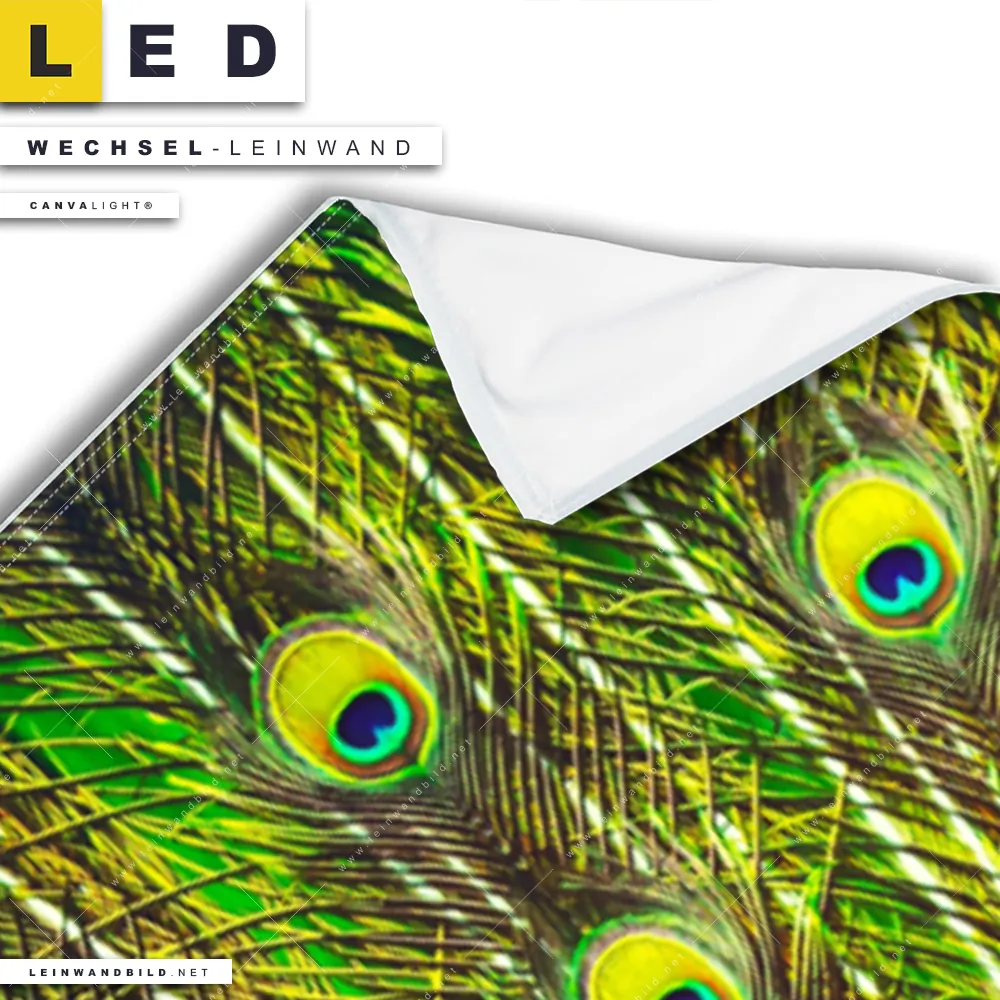 Du konfigurierst Deine individuelle LED Wechsel-Leinwand Canvalight® TEX | Pfauenschwanz | Schmal und wir produzieren sie NEU für Dich. Unsere Tierwelt Austausch-Fotoleinwände für Canvalight® LED Bilder sind KEINE Lagerware. Du bist Dir unsicher, welches Motiv oder Format das richtige für dein individuelles LED Wechselmotiv auf Leinwand ist, dann helfen wir dir gerne weiter und beraten dich!
