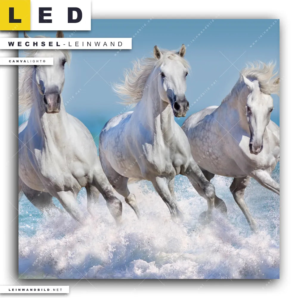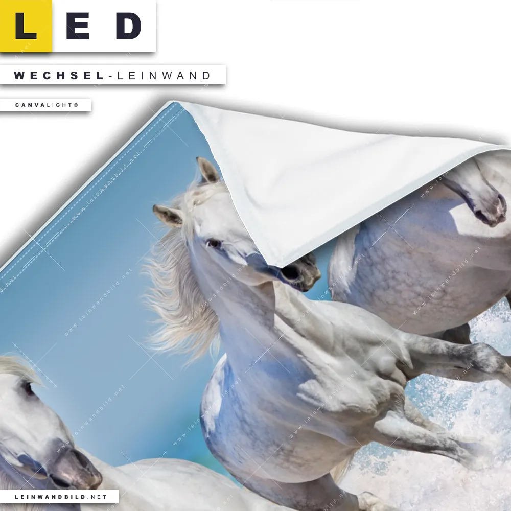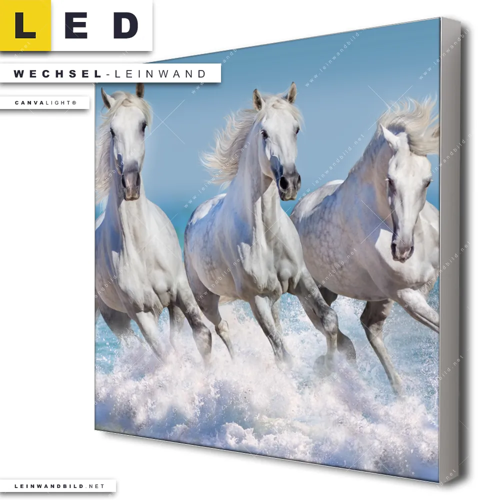 Du bist auf der Suche nach einer Tierwelt Wechsel-Leinwand für Dein LED-Leinwandbild im Quadratischen Format? Begriffe wie Hengst, Stute, Pony, Meer, Strand, Pferde, Wellen haben Dich auf der Suche nach Deiner Ersatz-Leinwand für dein LED Wandbild mit wechselbarer Leinwand inspiriert? Farben wie Weiss, Blau dürfen auf Deinem neuen Wechselmotiv für Dein XXL Leinwand-LED-Bild nicht fehlen und Leinwände im Natürlich - Realistisch Stil für Leuchtbilder passen perfekt zu Deinem Einrichtungsstil?