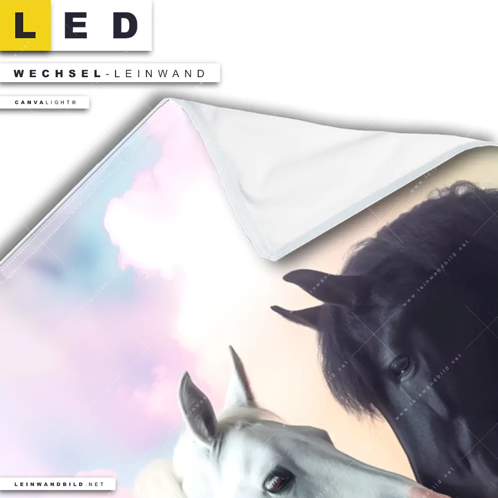 Du bist auf der Suche nach einer Tierwelt Wechsel-Leinwand für Dein LED-Leinwandbild im Hochformat? Begriffe wie Hengst, Stute, Pony, Pferde, Wolken, Nebel, Farbnebel, Ross haben Dich auf der Suche nach Deiner Ersatz-Leinwand für dein LED Wandbild mit wechselbarer Leinwand inspiriert? Farben wie Weiss, Schwarz, Hellblau, Pink, Rosa dürfen auf Deinem neuen Wechselmotiv für Dein XXL Leinwand-LED-Bild nicht fehlen und Leinwände im Natürlich - Realistisch Stil für Leuchtbilder passen perfekt zu Deinem Einrichtungsstil?