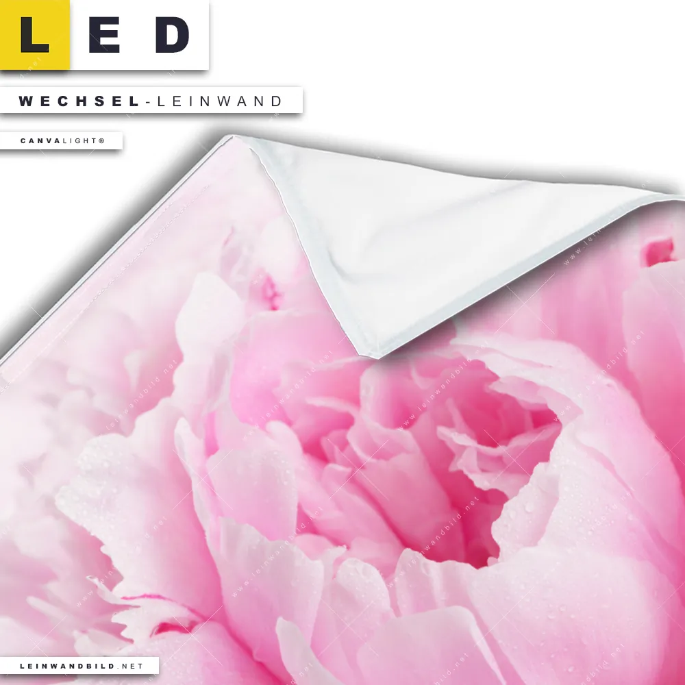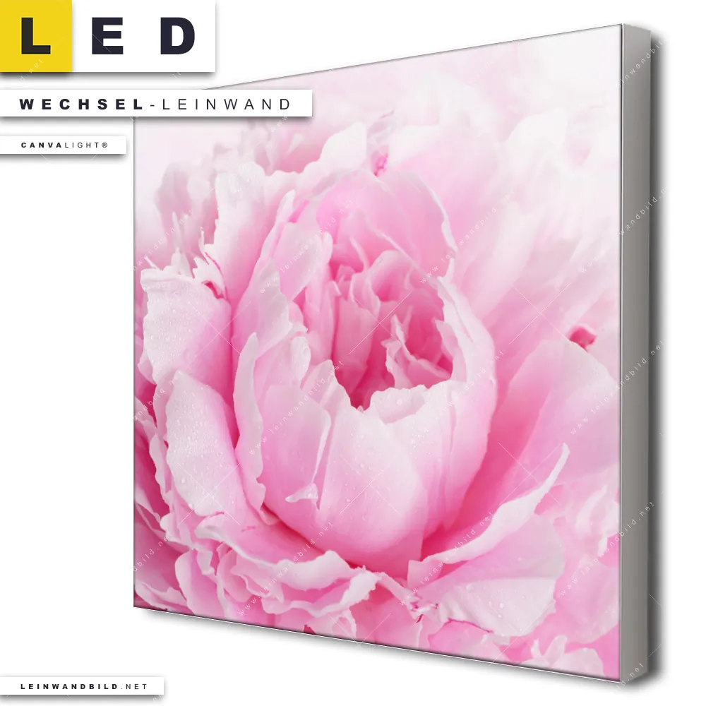 Du konfigurierst Deine individuelle LED Wechsel-Leinwand Canvalight® TEX | Pfingstrose | Quadrat und wir produzieren sie NEU für Dich. Unsere Blumen - Botanik Austausch-Fotoleinwände für Canvalight® LED Bilder sind KEINE Lagerware. Du bist Dir unsicher, welches Motiv oder Format das richtige für dein individuelles LED Wechselmotiv auf Leinwand ist, dann helfen wir dir gerne weiter und beraten dich!