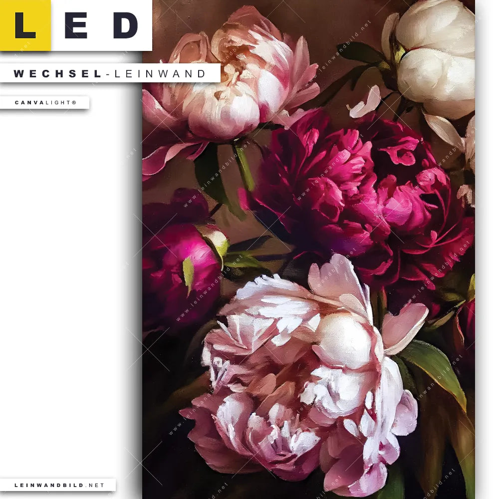 LED Wechsel-Leinwand Canvalight® TEX | Pfingstrosen im Barockstil | Hochformat