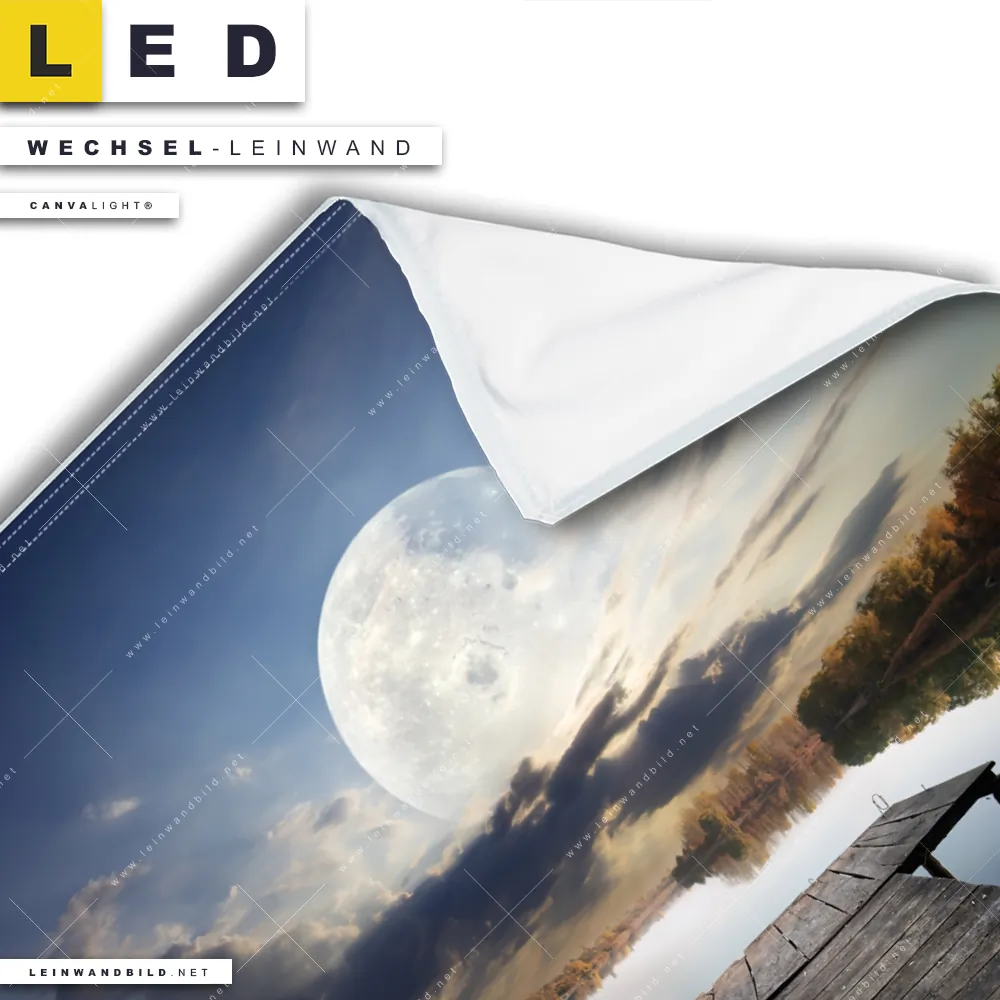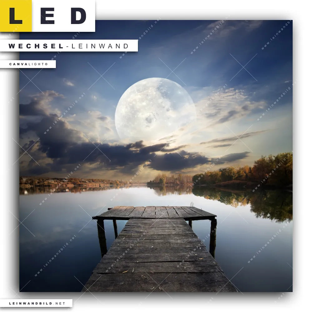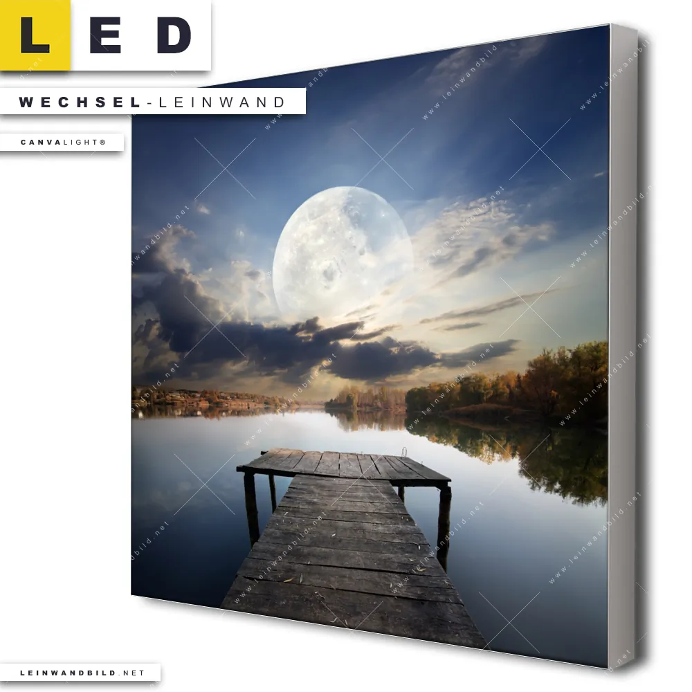 Du bist auf der Suche nach einer Landschaften Wechsel-Leinwand für Dein LED-Leinwandbild im Quadratischen Format? Begriffe wie Fluss, See, Steg, Mond, Angeln, Teich, Herbst, Fischen, Vollmond haben Dich auf der Suche nach Deiner Ersatz-Leinwand für dein LED Wandbild mit wechselbarer Leinwand inspiriert? Farben wie Blau, Braun, Weiss dürfen auf Deinem neuen Wechselmotiv für Dein XXL Leinwand-LED-Bild nicht fehlen und Leinwände im Natürlich - Realistisch, Retro - Vintage Stil für Leuchtbilder passen perfekt zu Deinem Einrichtungsstil?