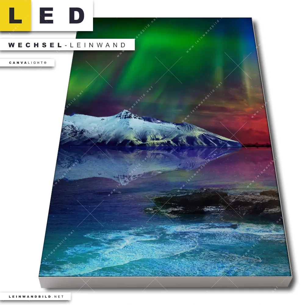 Du bist auf der Suche nach einer Landschaften Wechsel-Leinwand für Dein LED-Leinwandbild im Hochformat? Begriffe wie Natur, Nordlicht, Aurora, Norwegen, Island, Lichter, Skandinavien, See, Berg, Winter, Sonnenuntergang haben Dich auf der Suche nach Deiner Ersatz-Leinwand für dein LED Wandbild mit wechselbarer Leinwand inspiriert? Farben wie Rot, Grün, Blau dürfen auf Deinem neuen Wechselmotiv für Dein XXL Leinwand-LED-Bild nicht fehlen und Leinwände im Natürlich - Realistisch Stil für Leuchtbilder passen perfekt zu Deinem Einrichtungsstil?