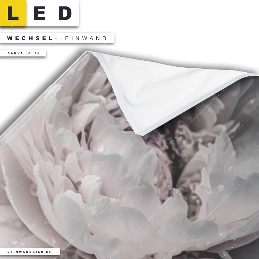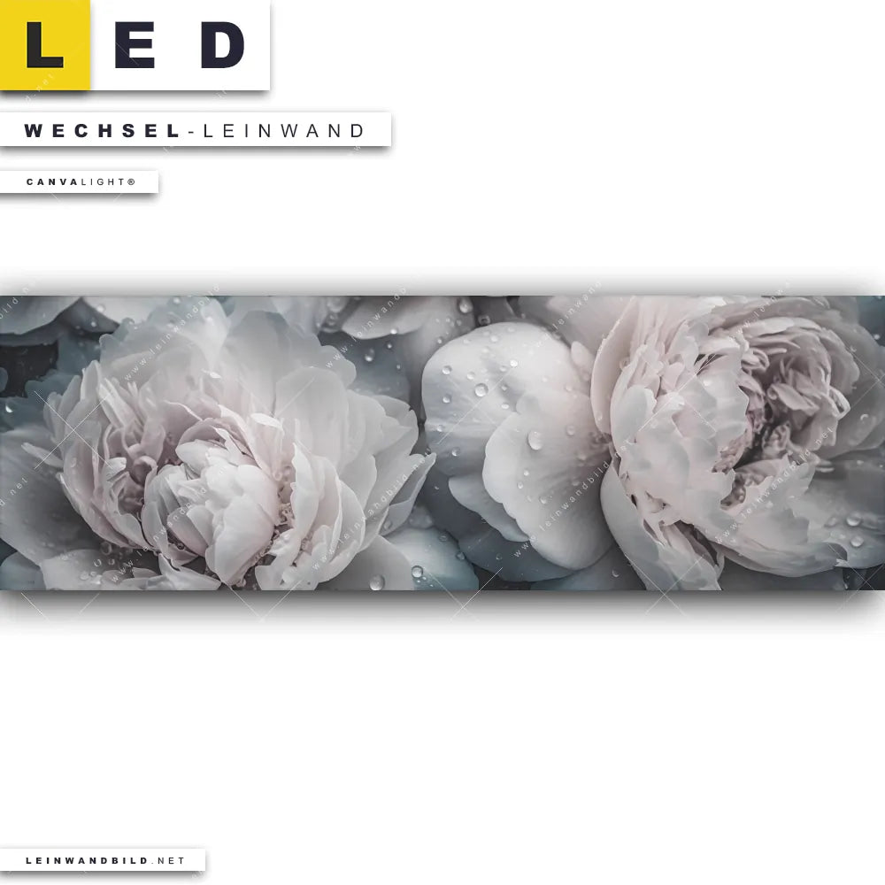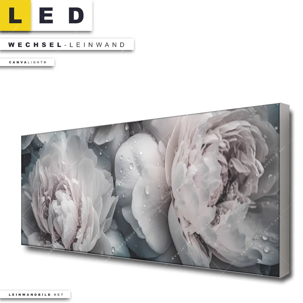 Du bist auf der Suche nach einer Blumen - Botanik Wechsel-Leinwand für Dein LED-Leinwandbild im Panorama-Format? Begriffe wie Pfingstrose, Pflanze, Natur, Nahaufnahme, Draufsicht, Wassertropfen, Blüten, Rose haben Dich auf der Suche nach Deiner Ersatz-Leinwand für dein extra breites LED Wandbild mit wechselbarer Leinwand inspiriert? Farben wie Weiss, Rosa, Grau dürfen auf Deinem neuen Wechselmotiv für Dein XXL Leinwand-LED-Bild nicht fehlen und Leinwände im Floral, Retro - Vintage, Schwarz - Weiss Stil für Leuchtbilder passen perfekt zu Deinem Einrichtungsstil?