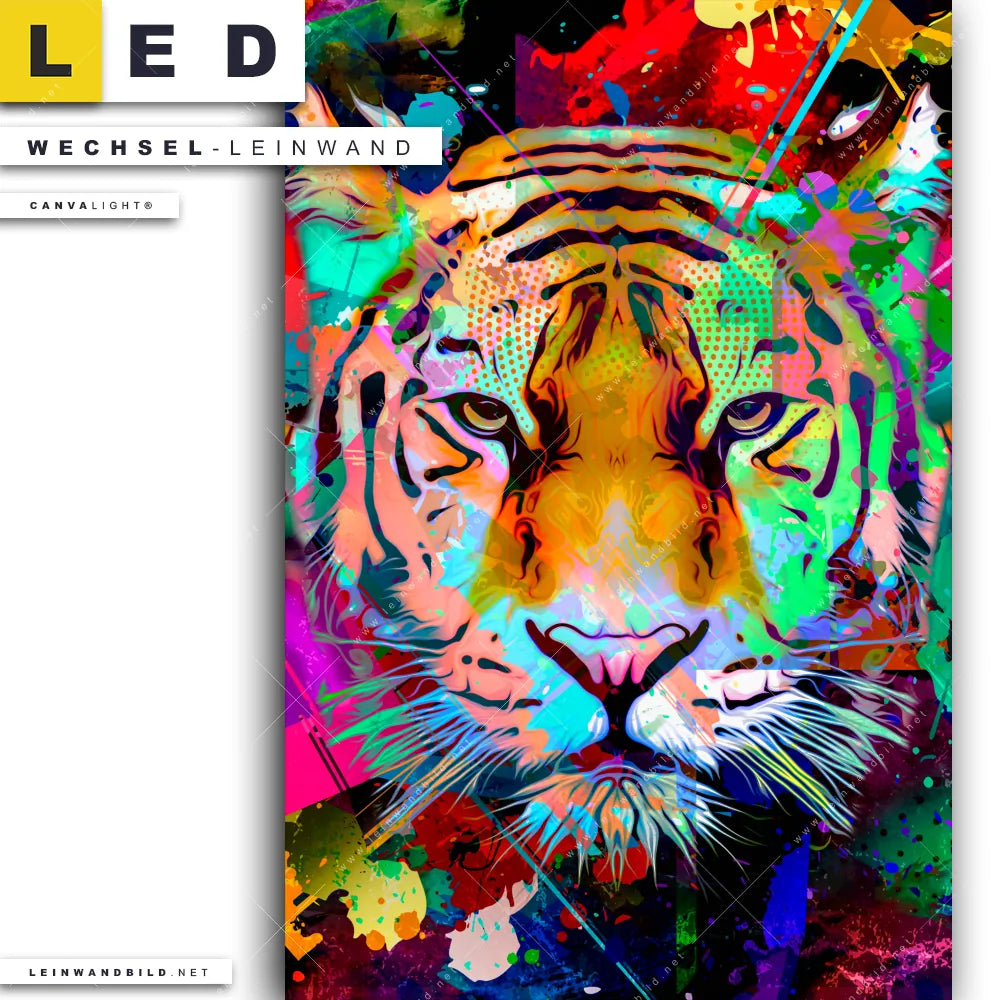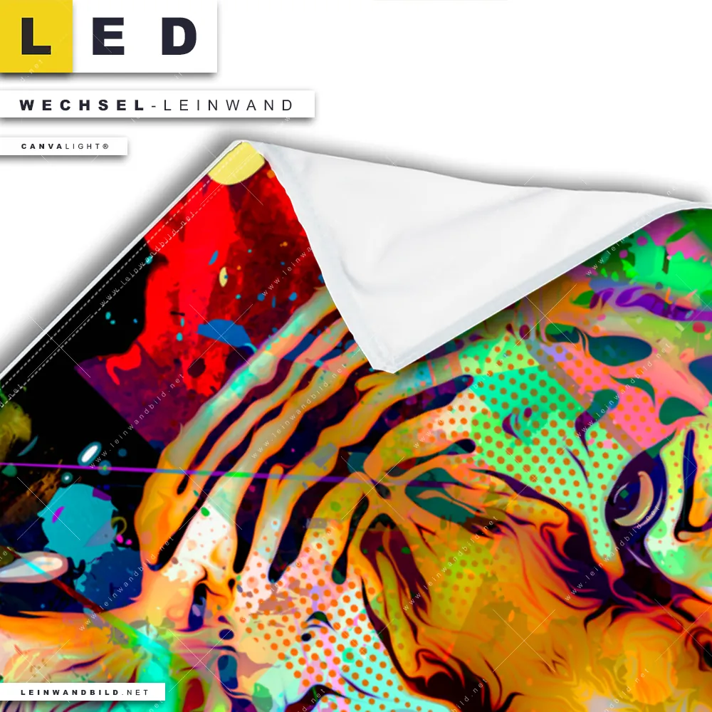 LED Wechsel-Leinwand Canvalight® TEX | Pop Art Tiger No. 2 | Hochformat